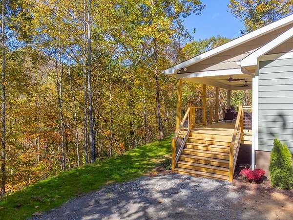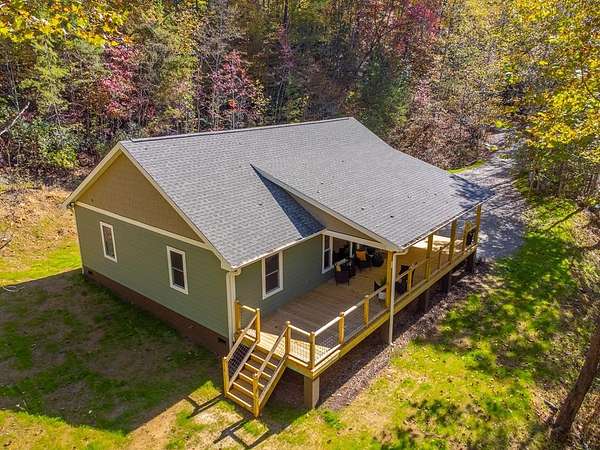 Brand-new construction in a private mountain setting! Nestled in Wildcat Cove between Sylva and Franklin, this modern mountain cottage combines privacy, convenience, and style. The open floor plan features vaulted tongue-and-groove ceilings, luxury vinyl plank flooring, and a bright kitchen with stainless appliances and a center island perfect for gathering. Each bedroom offers a spacious closet and plenty of natural light, creating comfortable retreats throughout the home. Step outside to a full-length covered porch overlooking the peaceful wooded surroundings with winter views; ideal for relaxing or entertaining. The side yard provides room for your fur babies, space for a shed, and ample parking with the option to add a garage. Enjoy the feel of seclusion while being close to Sylva, Franklin, and the Harrah's Cherokee Casino; a perfect blend of mountain serenity and nearby attractions. Move-in ready and waiting to welcome you home! Bonus: an additional .85-acre lot adjoining the property off Fox Trace Drive is included!