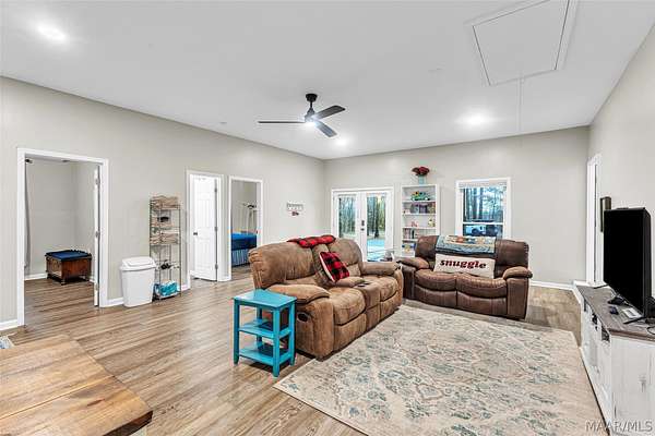 Looking for your own private hideaway and a way to make an income? Come check this beautiful home out with an Airbnb/In-Law Suite attached to the home! Located on 11.6 acres with a winding paved driveway. Walking through the beautiful double front doors into the wide entry foyer, you are greeted with extra tall ceilings and new LVP flooring! The kitchen is immediately towards the left. The spacious refinished kitchen has tiled floors, glass cabinets, gorgeous granite counters, tile back splash, oversized breakfast area, all new kitchen appliances, and TONS of countertop space. The large GREATROOM is where you will want to hang out all day, with the tall ceiling, all of the custom built-in cabinets, wood burning fireplace, and access to the large screened in back porch that has an amazing view. By the way, that screened in porch has it's own little wet bar. The master is oversized with a walk-in closet with built-in shelves, lots of windows and access to the screened in back porch. The master bathroom has tiled floors, double vanity, separate shower, and a jetted tub (handicap accessible). There is a room outside the master that could be either a small office or a large pantry. The two other bedrooms are very spacious and a large guest/hall bathroom separates the two bedrooms. The laundry room is large and has cabinets, countertop, and a mud sink and a door leading to the In-Law Suite or Airbnb! Yep that's right, the 3 car garage was converted to an Airbnb that has 2 bedroom, 1 full bath and a large living room with a small kitchenette! What a great way to make some extra cash while enjoying this amazing home! Enjoy the outdoors at the fire pit or go roam on the trails that have been carved into the woods. There is a wired workshop with added insulation, work bench and riding lawn mower. And if you are into farming, this property has you covered. There is a hog/goat pin with a goat house in one fenced in area and a chicken coop house in a separate fenced in area.