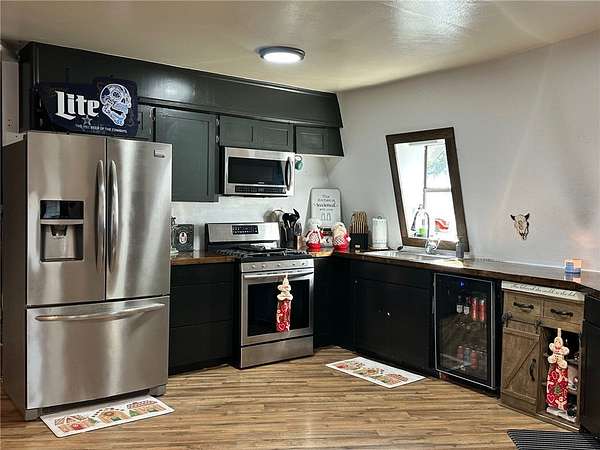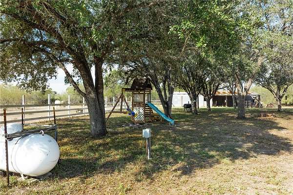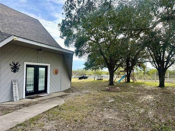 This unique dome-style home on 4.2 acres in Ricardo offers a warm welcome from the moment you arrive. Inside, enjoy soaring ceilings, expansive windows, and an open living, dining, and kitchen layout. The main level also features the primary bedroom and a beautifully updated full bath with dual sinks, classic clawfoot tub, and a roomy walk-in shower. Upstairs, a spacious loft awaits ~perfect for conversion into one or two additional bedrooms~ along with another updated full bath and a second bedroom. Outside, the front half of the property boasts a horseshoe driveway, mature oak trees, RV parking with electrical hookups and septic, ground-mounted solar panels, and a 2,200 square-foot barn. The back half of the property is shaded and ideal for horses or other farm animals, with the entire property fully fenced and ready to for you to call home. 2018 HVAC~2023 Roof~2024 Water Heater.
