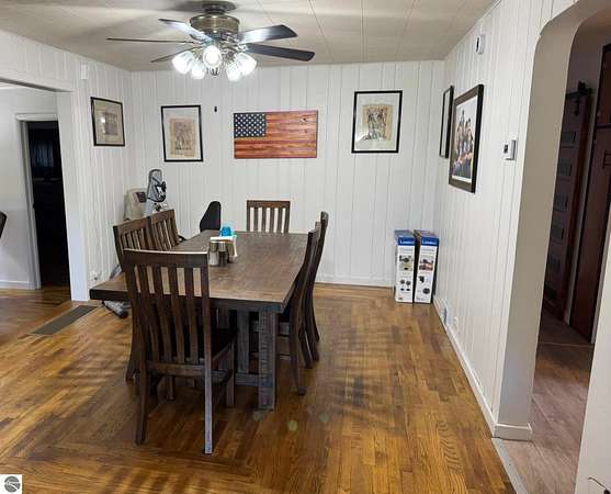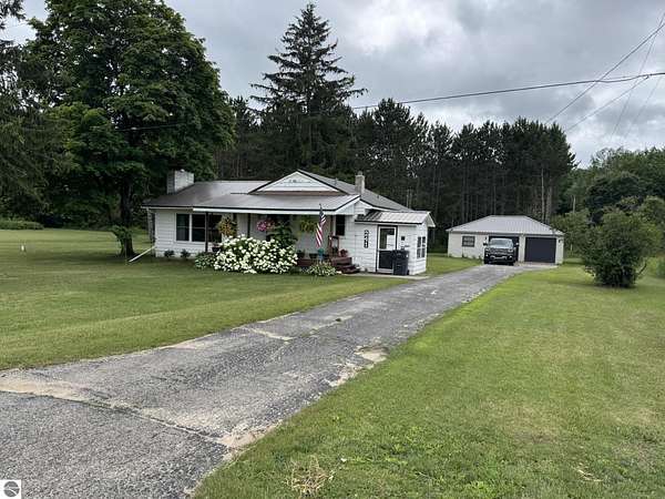 Welcome to your slice of Lake City paradise! Nestled on 1.77 acres just minutes from the heart of town and beautiful all-sports Lake Missaukee, this thoughtfully crafted 1950's ranch with modern updates that blends charm, comfort, and convenience. Seller updates include windows, slider, water heater, dishwasher, back deck, new paint throughout, updated bathroom/kitchen, pump and well in 2024, gutters & 1 new garage door. A welcoming covered porch greets your guests with classic curb appeal before you step inside through the mudroom and into the bright, welcoming kitchen -- the heart of the home, perfect for everyday meals or special gatherings. A large slider opens to the backyard deck off the main floor laundry, making indoor-outdoor living and entertaining a breeze. The dining room features gleaming hardwood floors and built-in shelving, while the cozy living room invites relaxation with its picture window filling the space with natural light and a fireplace ready for chilly evenings. Two comfortable bedrooms and a full bath provide just the right balance of space and simplicity, while the full basement adds flexibility for storage, hobbies, or future living space and the durable metal roof offers peace of mind for years to come. A detached 3-stall garage offers convenience and functionality and the luxury of a paved driveway that leads to it. Outdoors, you'll love the landscaped yard surrounded by trees, giving you a private setting for summer barbecues, fall bonfires, and year-round enjoyment. The spacious lot opens endless possibilities -- from gardens and play areas to simply enjoying the quiet of country-style living close to town. All this is just a short drive from downtown Lake City, where you'll find schools, shopping, dining, entertainment, and, of course, Lake Missaukee with its beaches, boating, and year-round recreation. This is more than a house -- it's a lifestyle. Don't miss your opportunity to make this warm and welcoming home your own!