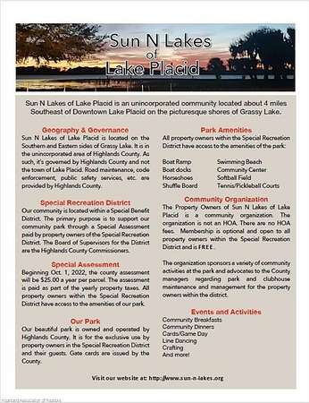 Vacant, wooded lot for sale-zoned R2 for multi-family build out! This lot is located on a paved road, near existing homes with electricity nearby. Well and septic will be needed on this lot. The property is a few blocks away from the Sun N Lakes Community Center and a few minutes away from US Hwy 27 which takes you north or south to other major cities, like Sebring, Avon Park, Miami, Tampa, Orlando, Ft. Myers or Naples to name a few. See what the Town of Murals is all about, shop at its specialty shops and sample local cuisine at the charming restaurants on the plaza, or visit the many lakes in the area. The county has many events and activities throughout the year like The Caladium Festival, the 12 Hours of Sebring, Bass tournaments, and so much more.
