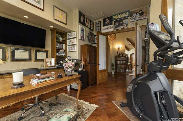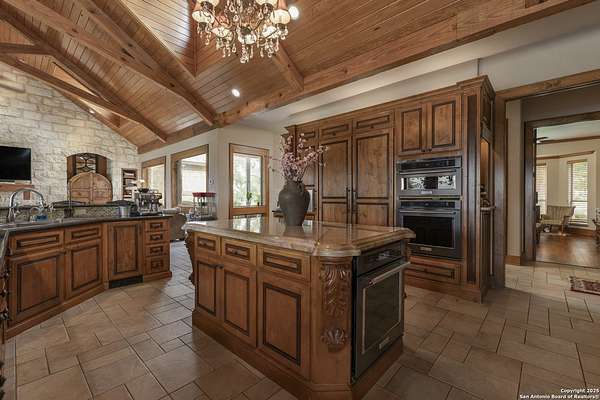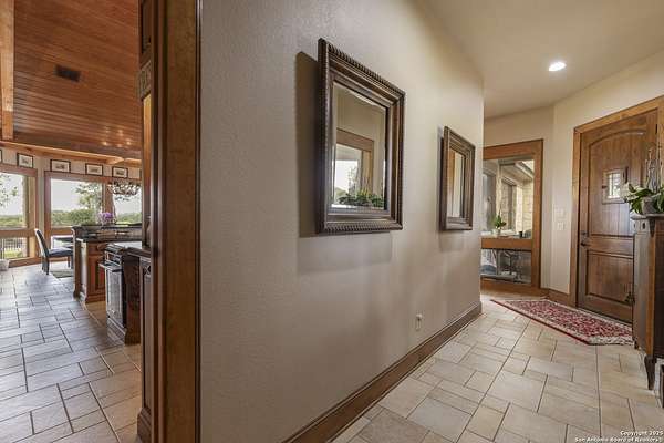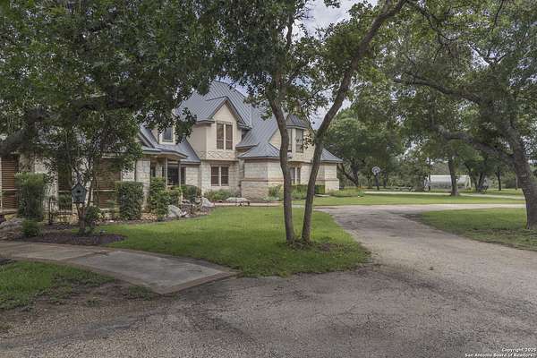 Step into timeless elegance and relaxed ranch living at the exclusive Bear Creek Ranch, located at the end of Seewald Road in Boerne. This stunning 7,000 sq. ft. custom-built Hill Country estate offers a perfect balance of luxury, comfort, and natural beauty. From the moment you enter, you'll be captivated by the towering pine-beamed ceilings that flood the home with natural light and showcase breathtaking long-range views from nearly every window. The thoughtfully designed layout features 5 spacious bedrooms, 4 full bathrooms, and 2 half bathrooms-ideal for both everyday living and entertaining. The Kitchen, dining & family room overlook pool and unobstructed hill country views, as does the upstairs balcony off the gameroom. Outside, two new automatic gates provide both security and convenience, while newly built interior gravel roads allow easy access throughout the expansive property. The Bear Creek Ranch blends into the Hill Country offering long range views of the Guadalupe River Valley. This prestigious ranch is surrounded by natural beauty and cushioned by large estate ranches. The landscape is heavily peppered with Live Oak, Post Oak, Walnut, Black Cherry, Spanish Oak, Buckeye and Persimmon hardwoods. In addition to the main residence, a fully equipped guest cabin offers privacy and comfort for visitors or extended family stays. Whether you're enjoying the panoramic Hill Country views, exploring the on-site cave, or relaxing in the peaceful seclusion of your land, this property is a true sanctuary. Don't miss the opportunity to own a piece of Texas paradise-128 acres of unmatched beauty, privacy, and craftsmanship await.