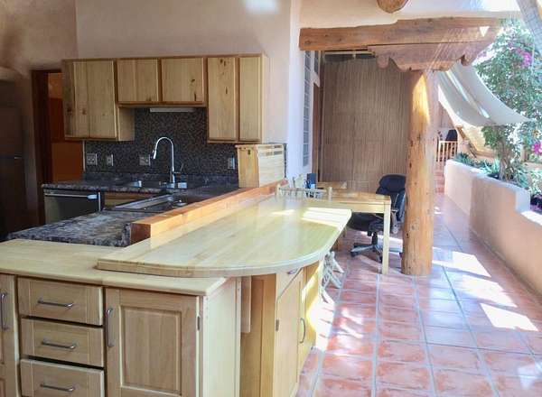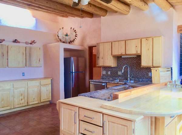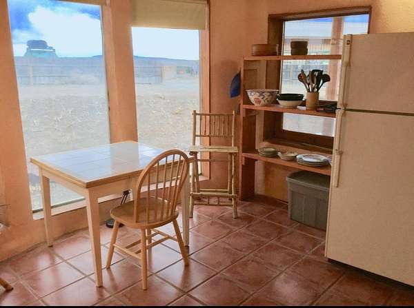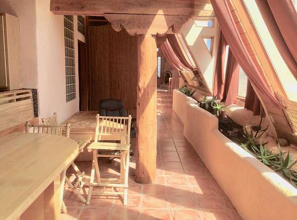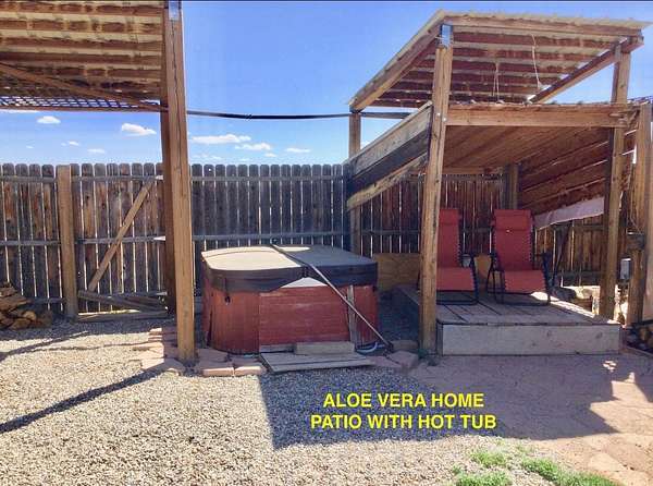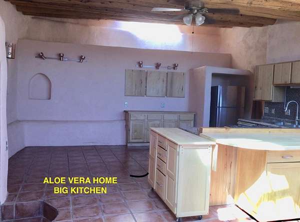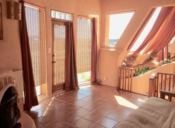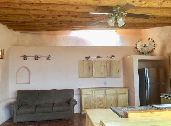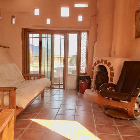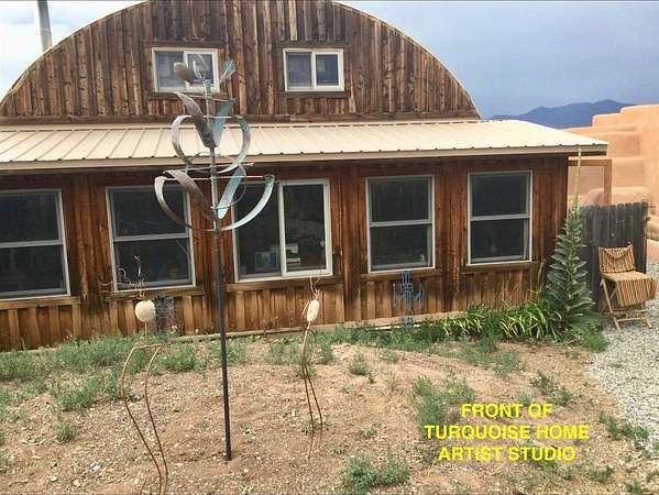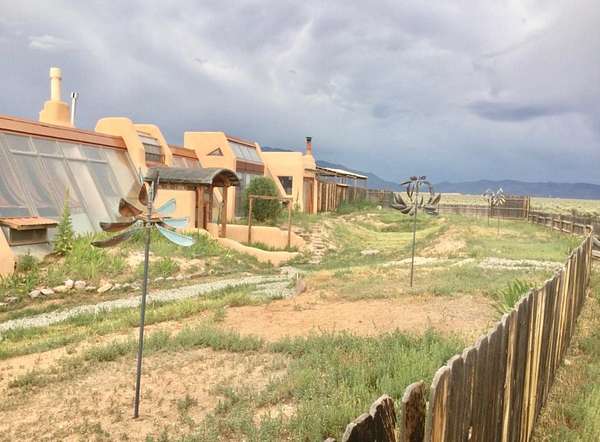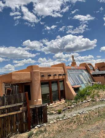 An Earthship (Aloe Vera House) as the main house, shared wall with the Casita (Rosemary Casita), and a Studio (Turquoise House) as a separate guest house with a barn, five stalls, corrals, and extra space to expand with ~2 empty acres of land. All income producing properties could bring in $6,000 per month with all three rented out. The Aloe Vera House has the furthest entrance with a private fenced-in yard and a sliding door to the living room or possible second bedroom. Insert woodstove in the kiva fireplace for toasty warmth with your honey on cold nights. A few steps down to the Master Bedroom, two closets (His and hers etc.), and a beautifully lit bathroom with a skylight. This home was re-stuccoed three years ago and is in great shape/well-maintained/loved. The open concept dining, kitchen and possible mini-living room allow lots of storage with a wash room/pantry off the kitchen and a foyer to the front door. Completely remodeled kitchen! Move-in ready or investment property with current tenants. A shared mechanical room to the Casita, fiberoptic for the whole building, and an on-demand water heater for you or your tenants! The Casita also has a private entrance so nobody really sees each other in passing. As you enter the Casita you step into another foyer for your shoes and coats and a kitchenette with two hot plates mounted on the counter with a mini double-oven included. The Pantry/closest is a tri-level design hidden behind the mini living space! The tri-level loft bedroom is cozy and built above the pantry. Laundry on-site for tenants at the Turquoise House next door. The bathroom is the star of the show at the Casita with a stunning rock tub and rock features. Natural light doesn't disappoint! The Studio Turquoise House has been transformed into an Artist's Dream with a huge open studio space, woodstove, office space, propane heater and a loft bedroom. The second half of the studio is the living space with a full kitchen, full bath, living room, and bedroom with a reading nook for your bookshelves and office space. The Turquoise House has two outdoor seating areas - one in the front for extra sun and one in the back for shade and sunsets on the mountains! About 2-3 acres of the property comprise of corrals and the barn. Hiking and riding trails nearby and possible investment behind the property - 50,000 acres! Full of history, beauty, infinite ideas, and creativity for a new owner to take over current leases or to turn this dwelling into your mini universe of divine energy!