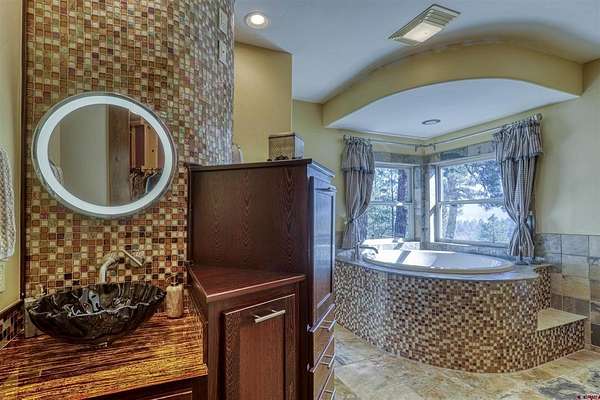 Deborah Kerns, Team Pagosa Realty Group, C: 970-749-0986, deborah@teampagosa.com, www.crenmls.com: One of a Kind Amazingly BEAUTIFUL Luxury CUSTOM home overlooking Echo Lake as well as Breathtaking North & East Range Mountain views. You will Love the peace & tranquility this home gives you situated at the cul de sac on the hill amongst the Beautiful Mature trees, it also features a large circle drive & extra parking for your friends & family. You will appreciate the Luxury lifestyle this home exudes. Furnished with upscale furnishings. First Impression is exceptional as you enter the foyer with ledgestone, cedar & wall of windows on both sides you will see the mountain views and turn back to see the lake views, look down at the custom flooring with river rock pebbles depicting a meandering river, then you will enter the den with a see through gas fireplace into the huge great room with New custom wood windows with unobstructed lake & mountain views, high vaulted ceilings to make it light and bright. American Black Walnut wood features. The Gourmet Chefs kitchen features custom granite and onyx counters, custom cabinetry, electric range top and double wall ovens and the walk-in butlers pantry features ample counter & cabinet space, an abundance of prep space, a large walk-in broom closet. Large breakfast nook with custom featured ceiling plus a separate niche for the children, each room features a door out to the huge wrap around balcony and patios for entertaining. Just up a few steps is the primary ensuite with many quality features, the bed is set to over look the lake it also features its own private balcony, the huge custom walk-in closet also features a full sized washer and dryer, huge round tub sits along windows for the mountain views, large walk-in tile surround shower, double vanity with an abundance of custom cabinetry & extra storage, private water closet. Back to the other side of the foyer Just up another few steps in an office with a wall of windows and a huge ensuite that will sleep 4 or more, and also a 3/4 bath with custom tile surround shower, sink and toilet, Custom closet and more windows!!This home has a central vac system and is currently set up with SMART features. The lower level features a family room/den with wet bar/kitchenette with door out to the covered patio with more majestic views of the mountains and Echo Lake. The 2nd primary ensuite with tile surround walk-in shower, separate tub, custom built in vanity and water closet around the corner, plus Huge custom walk-in closet The HEATED oversized 2 car garage is attached to the home... You can fish/paddle board/kayak etc.. every day at Echo Lake. This home is one of a kind, very custom, you will LOVE IT!!!!