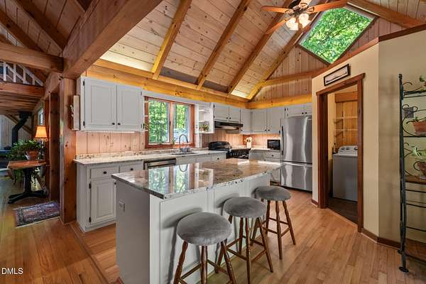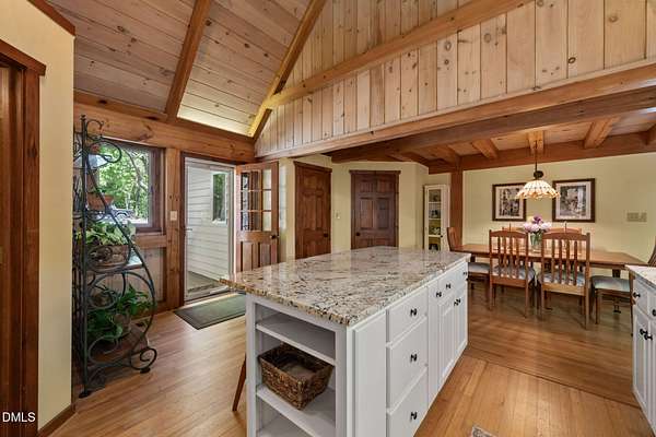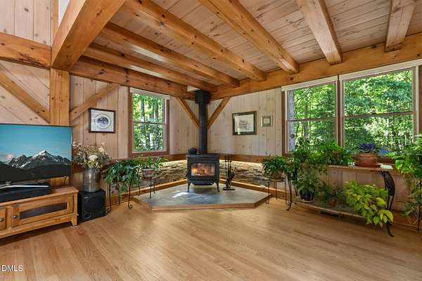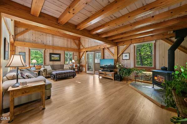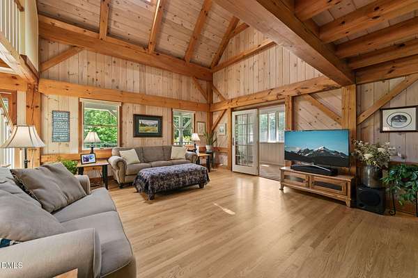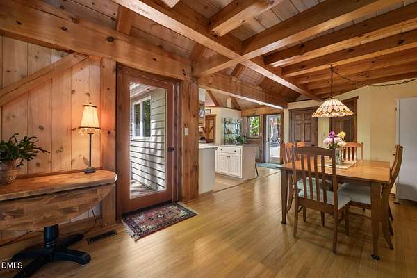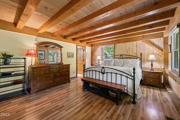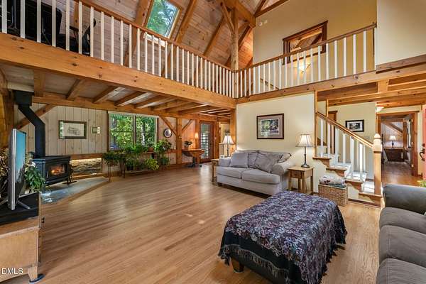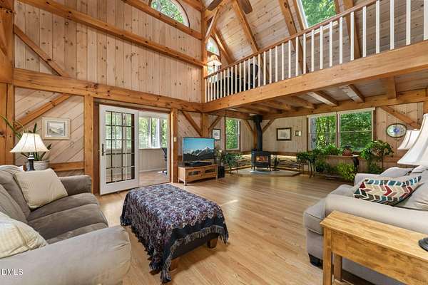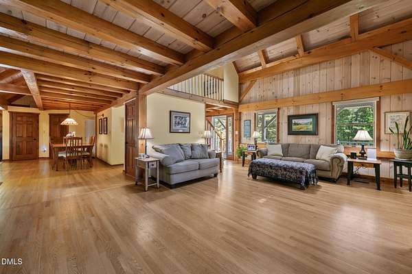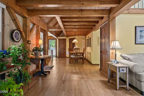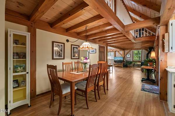 If ever there was a property that INVITED you to DREAM, CREATE and EVOLVE, this is it. Perfectly tucked into the Chatham County countryside, this 10.01 acre CHAPEL HILL addressed paradise is near it all but far enough away to make the hustle and bustle of everyday life just melt away. This POST & BEAM beauty with METAL roof, VAULTED living space and Primary Bedroom downstairs makes a super strong case to just never leave. The brilliance, beauty and warmth of the light-filled TIMBER structure and hardwood floors inside is a direct reflection of the hardwood trees outside while the gardens and plantings seem to reach out and give the property one of the sweetest hugs you might ever imagine. A grand walkout deck perfect for GRILLIN' and CHILLIN' is situated near the luxe kitchen (that comes complete with an AGA range) will get your grilling/smoking juices flowing. Idyllic BIRDSONG enhances this paradise, transforming it into a sanctuary for all who visit. So. Are you craving your very own floral farm side hustle with the amazing peonies, hydrangea, azaleas, iris and lamb's ear that fill in the visual landscape? Maybe CHICKENS are your thing? They're here too (and can convey!). Perhaps you want to horse around or just want a bona-fide reason to finally throw down for that tractor, GATOR or zero-turn mower? Problem solved. Or how about cutting your teeth with FRUIT TREE farming with trees and bushes that already produce (peaches, figs, NECTARINES, plums, apples, cherries, persimmons, blueberries--see document for the full lineup)? Can there even be more? Yep. How about a detached 2-car Garage with workshop space to fix, well, just about anything PLUS a separate 590 sf of flex space above that comes complete with a KITCHENETTE and bathroom perfect for creating an exercise studio fit for a land BARON/BARONESS or a remote ''satellite'' office or a place to camp out those Southern Living magazine folks for their article site visit on your victorious victory gardens or whatever. Come see for yourself--I'm betting you'll be glad you did.