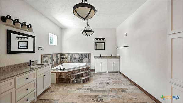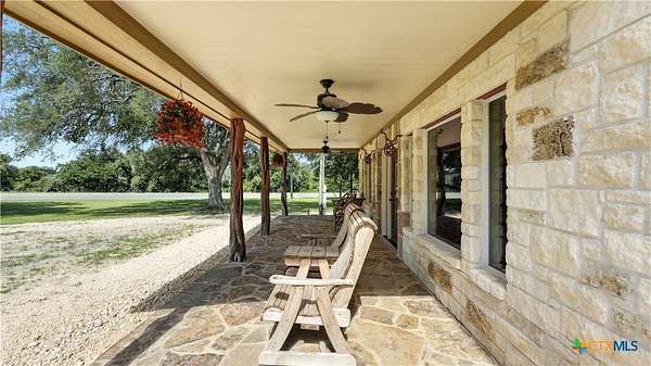 Multi-Generational Ranch Compound with Guest Casita. Immaculate ranch property featuring a serene pond, wet-weather creek, historic oak trees, and improved Tifton 85 hay pasture. Perimeter and cross-fencing set up for efficient cattle rotation plus working pins, equipment barn, feed storage, and a massive carport with outdoor kitchen potential. The custom home offers dual primary suites with spa-like baths and walk-in closets, a chef's kitchen with 5-burner gas range, double ovens, granite countertops, island, and walk-in pantry. Enjoy an open layout with a barrel ceiling, stone fireplace, bay window, and natural woodwork. Additional guest bedrooms upstairs. Separate guest casita includes a full kitchen, living, dining, bedroom, and bath. Private gated entrance. Agriculture valuation in place. Ideal for multi-generational living, ranching, or a private retreat.