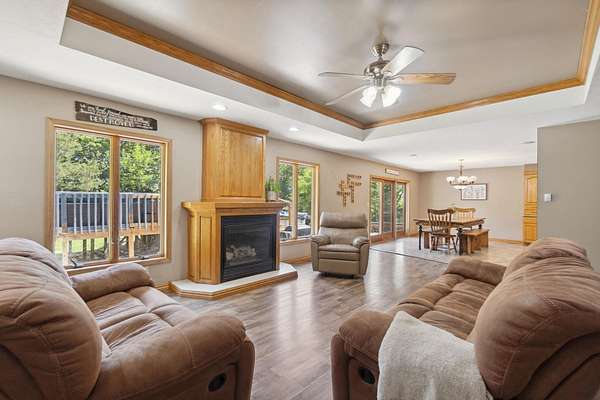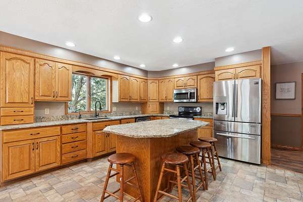 Welcome to your own private retreat nestled on over 5 acres in a highly sought-after location on C80, where nature meets comfort in a truly serene outdoor experience. As you arrive, a paved estate-like drive welcomes you into a peaceful haven featuring a babbling brook and picturesque pond water feature that bring the back yard to life!! Your very own park-like setting complete with multiple trails for daily strolls. Grab your morning coffee and enjoy ultimate serenity as you take the next adventure through the grounds. Enjoy the great outdoors right at home with plentiful wildlife in your own backyard--pheasant, deer, bobcat, fox, and turkey are frequent visitors. With the ability to hunt on the property, it's a true haven for nature lovers and outdoor enthusiasts. The backyard is a true entertainer's paradise with a cozy fire pit and above-ground pool, perfect for making lasting memories. Inside, this open-concept home boasts a highly functional layout with over 4,000 square feet of living space, including a spacious master suite and a basement built for hosting large gatherings. Added bonus den room in the basement. This is more than a home--it's a lifestyle surrounded by tranquility, comfort, and natural beauty..