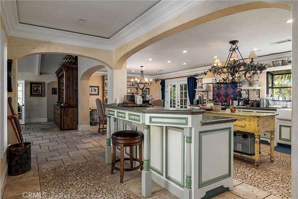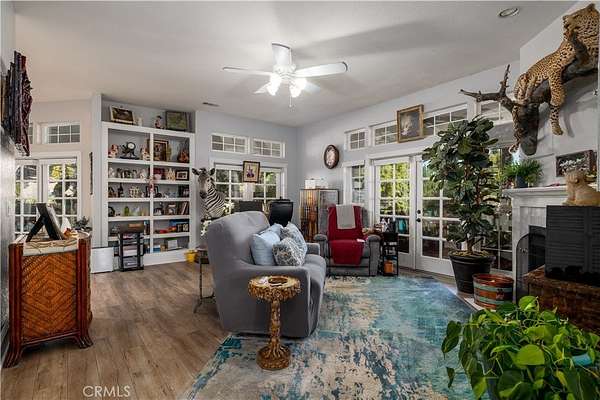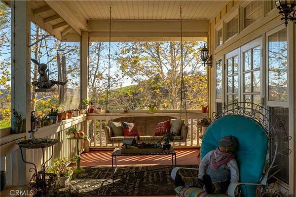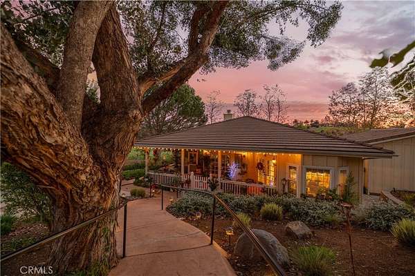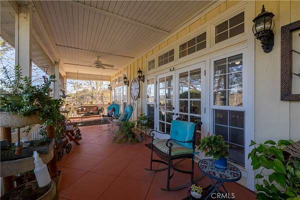 Two complete homes on 5 acres all useable. French Provential style, main home is open floor plan and very spacious, great for gatherings, with open kitchen to living area and dining. French doors throughout. Large shaded, fenced in back yard to keep dogs close. 2 bedrooms with a large den/office that can easily be transformed to a bedroom as needed. Living area looks out to the infinity edge pool through large windows on either side of the fireplace. Hen house, barn, large enclosed animal structure that housed peacocks, covered patio and pavilion to view property and 1.9 acres of vineyard both red and white variety. A concrete walkway with handrail leads to the 2nd home. 2 car garage, spacious open floor plan easily entertains family and friends. Wraparound porch, with half completely screened in overlooking landscaped acres. 1 bedroom and one bath is outfitted with a walk in/sit down tub/shower, separate laundry room.