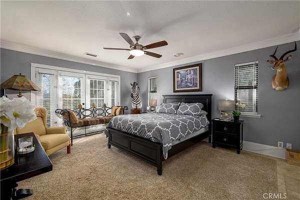 - Ceiling Fan(s), Crown Molding, No Interior Steps