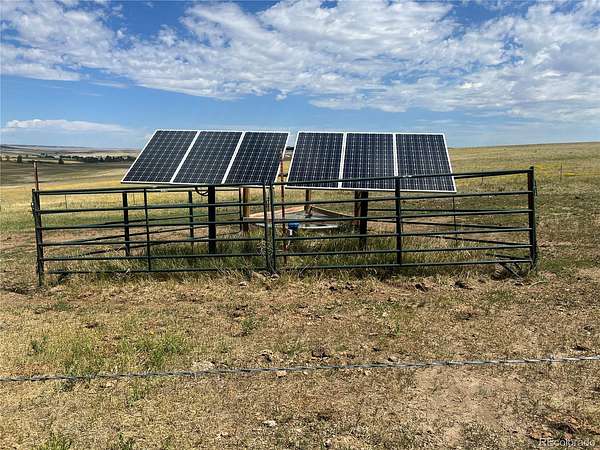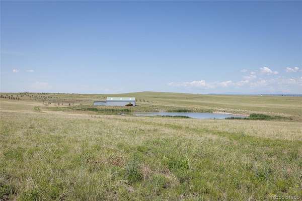 The land has flat to rolling terrain with spectacular views of Pikes Peak, the Northern Front Range and Bijou Basin. The acreage is perimeter fenced on all sides and cross fenced all with new fencing. There is a new septic, power and water well located at a private homesite location on the ranch. Additionally, a large barn adjacent to a filled fishpond. The Seller has been meticulous in caring for and preparing this property, planting trees, and stocking the fishpond. Included are adjudicated water rights and two permitted water wells. Solar powered stock well, more than 1000 ft deep generating more than 23 gpm water. The right of groundwater allocation falls within the Denver Aquifer (113-acre feet for area A and 2,660 acre feet for Area B per year, with an allowed annual amount of withdrawal 1.13 acre feet for Area A and 23.6 acre feet for Area B) which underlies 180.6 acres. Arapahoe Aquifer (5,530 acre feet, with an allowed annual amount of withdrawal of 55.3 acre feet per year) and Laramie Fox Hills Aquifer (4,740-acre feet, with an allowed annual amount of withdrawal of 47.4 acre feet) which underlies 180.6 acres. An additional 75 acres within the Denver Aquifer totaling 1,148 acre feet, Arapahoe Aquifer totaling 2,170 acre feet and the Laramie Fox being 2,030 acre feet. All Aquifers are for uses including in-house, irrigation, agricultural, commercial, industrial, fire protection, stock watering, replacement, and recreational purposes. This determination provides great value to the total acreage. Mule deer and antelope frequent the acreage. The pond is 12 ft deep and 1.65 acres of surface area; lined, stocked with Largemouth Bass, Catfish, Bluegill, and Minnows What a great location and property with a lot of the cost already completed.