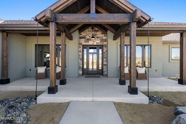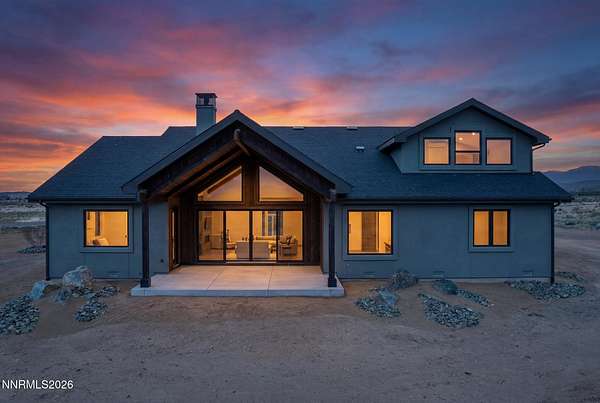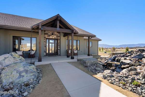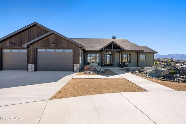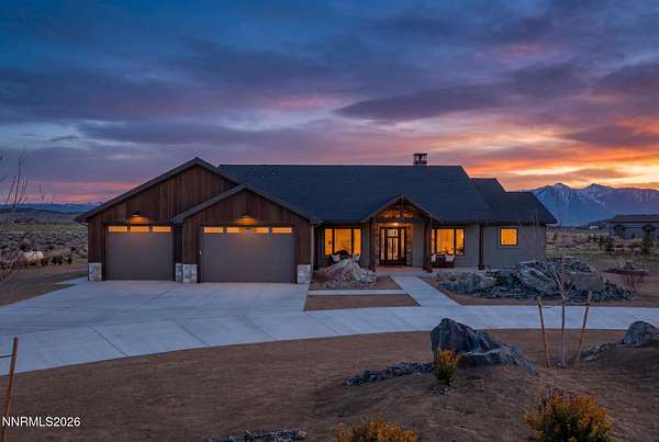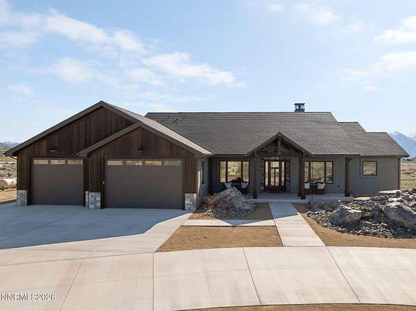 Perched in the peaceful setting of Fish Springs, this property offers space, privacy, and flexibility on expansive acreage with wide-open views. Experience elevated living in this brand-new 2025 custom luxury home on 5.72 private acres, with sweeping panoramic views of Jobs Peak and the Sierra Nevada. Designed for those who love the outdoors, it offers the rare combination of space, privacy, and easy access to town amenities, with BLM land just a few parcels away for hiking, biking, and exploring. In addition to the existing home, the property presents a rare opportunity for buyers seeking additional storage or workspace, with a planned RV garage option designed for a 50' x 22' structure with 14' x 14' roll-up doors. Plans and pricing are available for the proposed addition, offering the ability to create a tailored solution for motorcoaches, boats, trailers, or recreational vehicles. Spanning 3,583 square feet, this thoughtfully designed 4-bedroom, 3.5-bath residence blends modern sophistication with the ease of single-level living. Soaring ceilings and walls of glass frame the alpine landscape, filling the home with natural light and creating a seamless connection to the outdoors. Built with comfort and performance in mind, this energy-efficient home features high-end materials and modern systems for quiet, year-round living. The chef's kitchen includes an oversized island, premium appliances, and a built-in wine fridge, ideal for gathering after a day on the trails. The great room features a sleek linear gas fireplace and expansive windows that capture the surrounding views, creating a warm and inviting space for entertaining. A dedicated office, spacious mudroom, and spa-inspired primary suite provide everyday functionality. An upstairs bonus room with a full bath offers flexibility for guests, a studio, gym, or media room. Outside, a custom boulder water feature enhances the sense of retreat, while the oversized 4-car garage provides ample space for vehicles, gear, and hobbies. Located just minutes from town, 30 minutes to Lake Tahoe and Heavenly, and about an hour to Reno-Tahoe International Airport, this property offers a seamless blend of convenience, privacy, and the advantages of tax-friendly Nevada living. Whether enjoyed as-is or enhanced with the RV garage addition, this property offers the space, freedom, and setting to fully embrace the Northern Nevada lifestyle.
