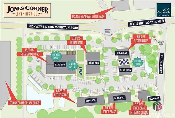 Est $20,596/moJones Corner is a 6 Acre, Fully Branded, Mixed Retail/Office Complex with most site development in place (entrances, sewer, water, stormwater, electrical, and approximately 50% of roads and curbs). Site includes the existing historic home which has had a full exterior renovation and the interior is stubbed/studded and ready for build out. Approved for 3 buildings up front zoned B-1 and two office buildings in back zoned O-I-P. With an unbeatable location in Oconee County, Jones Corner has the potential to be a high-end destination mixed commercial use center. THIS IS A MUST SELL SITUATION. Visit.