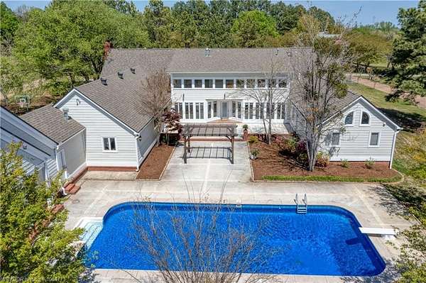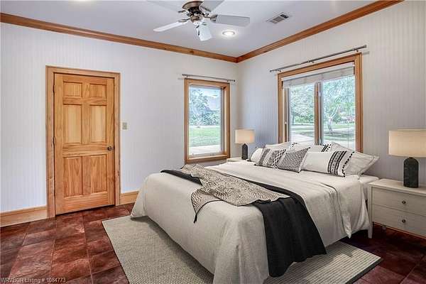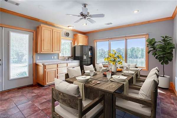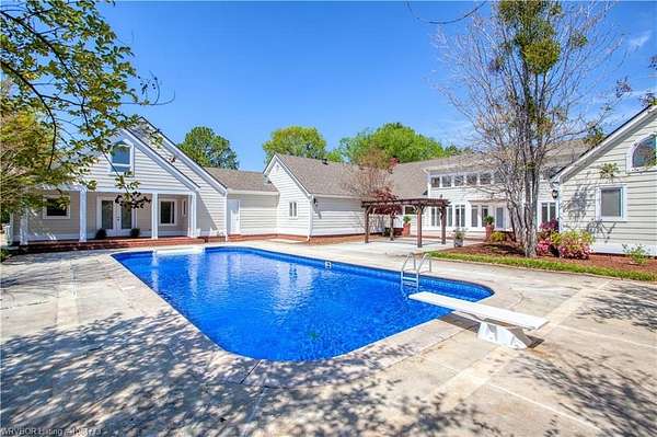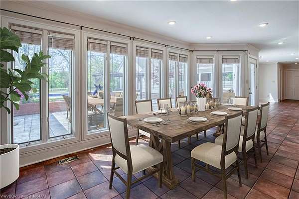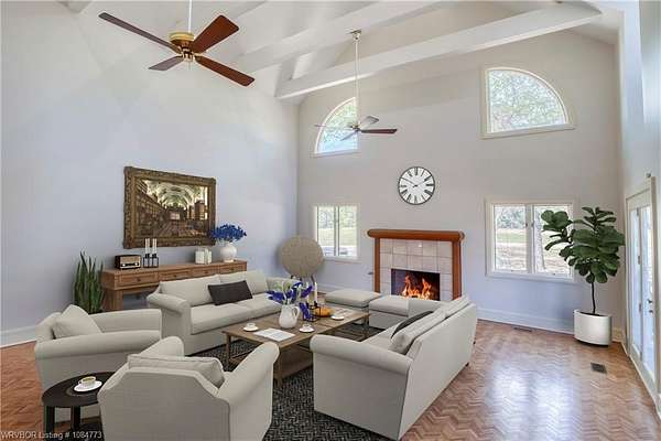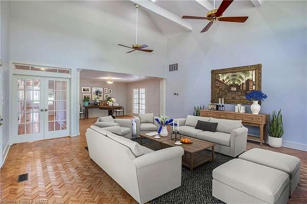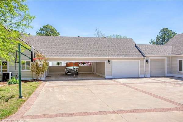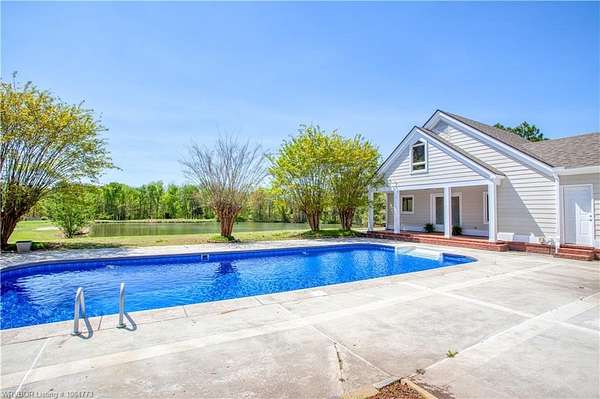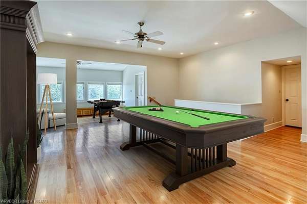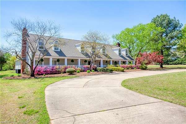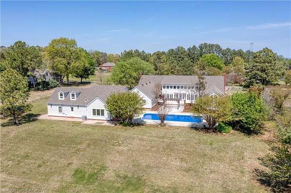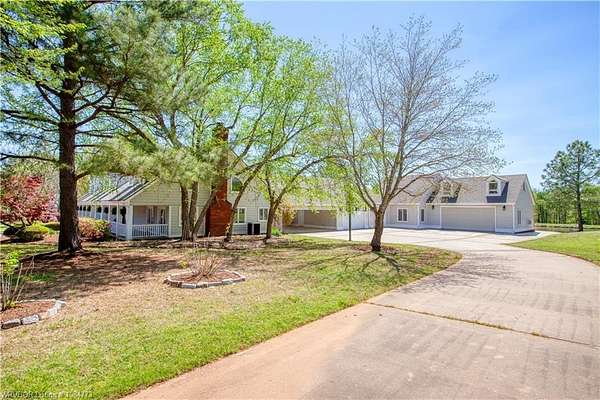 Timeless estate on nearly 5 acres in the gated Wyndermere subdivision. Main home features cathedral ceilings, exposed beams, and fireplaces in both the living room and den. Home is filled with natural light and hardwoods throughout. The spacious kitchen offers granite countertops, custom cabinetry, under cabinet lighting, a large island with pendant lighting, double ovens, and is overlooking the den. The main-level primary suite includes a sitting area, private patio access, dual vanities, dual walk-in closets, a walk-in shower, and a whirlpool tub. Half bath and oversized laundry room with sink on main level. Upstairs offers four additional bedrooms, two Jack-and-Jill baths, and a lounge area. Guest house(600sqft) with bedroom, full bath, kitchenette, & oversized 2-car garage(763sqft). Bonus room over garage(265sqft). Outdoor amenities include a circular front drive, sprawling covered front porch, 3-car attached carport, 2-car garage, inground diving pool (new liner/pool lights in 2023), a stocked pond, mature landscaping, fig trees, new roof (2022), full-yard irrigation, and boat ramp on the Arkansas River. Large patio for entertaining around the pool. Tankless water heaters in main home and guest house for energy efficiency. Security, Space, and Privacy all in one! Located just minutes from Fort Smith's Top-Rated Schools, shopping, dining, Starbucks, 2 miles to Mercy Hospital, 5 miles to Arkansas Colleges of Health Education, 5 miles to University of Arkansas Fort Smith. Must see to appreciate all of the special qualities this home has to offer!