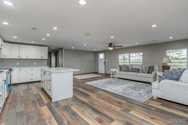 VERY OPEN STYLE KITCHEN & LIVING ROOM COMBO, LARGE CENTER ISLAND, ALL NEW WINDOWS, SIDING, SHINGLES, GUTTERING, WIRING, PLUMBING, DRYWALL, TRIM, DOORS, INTERIOR PAINT, NEW KITCHEN CABINETRY, STAINLESS APPLIANCES, NEW UPDATED BATHROOMS. W/NEW SHOWERS, TOILETS, SINKS-VANITY, NEW FANS & LIGHTING FIXTURES, THE MASTER BEDROOM IS SEPARATE FROM THE OTHER BEDROOM AREA