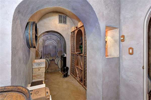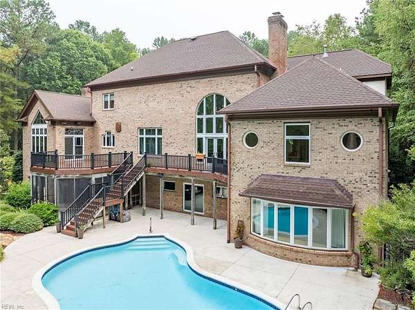 Private Estate Living Adjacent to Williamsburg Winery. Tucked away on a 3-acre lot, this all-brick custom transitional home offers the perfect blend of elegance, comfort, & privacy. Designed with exceptional craftsmanship & attention to detail, the home features a stunning two-level library, custom cabinetry throughout, & an open-concept formal living and dining space ideal for entertaining. The gourmet kitchen flows effortlessly into the cozy hearth room with one of 3 brick gas fireplaces & sunlit eat-in area, all overlooking the park-like, backyard. With five generously sized bedrooms--four of them ensuite--there's room for everyone. The lower level is perfectly suited for multi-generational living or private guest quarters. The finished walk-out lower level is an entertainer's dream: a temp-controlled wine cellar, a beautifully appointed bar, flexible media room, & a huge rec room that opens directly to the in-ground pool & a screened-in porch. This is more than a home, it's a retreat