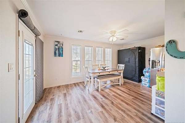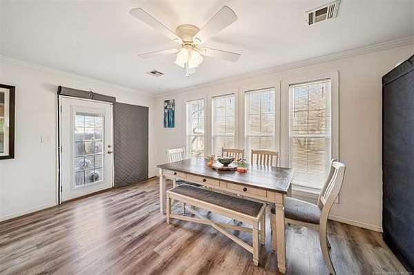 Back on Market at NO FAULT OF SELLER! $4,000 seller-paid buyer credit available with acceptable offer!! Nestled in a park-like setting with mature trees, this inviting home offers space, character, and room to gather. Sitting on the largest lot in the neighborhood, it features 3 bedrooms plus a versatile bonus room that could serve as a game room or 4th bedroom. Two separate living areas provide flexibility, with one easily doubling as a home office. The dining room is filled with natural light thanks to large windows, creating a warm and welcoming atmosphere for everyday living or entertaining. New deluxe gas fireplace being installed, and new A/C unit in 2023. A safe room in the garage adds peace of mind. With plenty of outdoor space, including a new fence, and a layout designed for hosting family and friends, this home is one you'll want to see in person!
