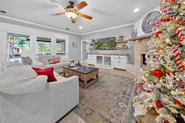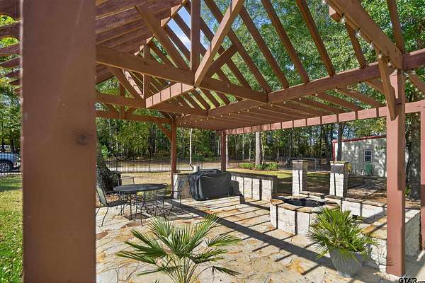 Experience refined country living at its finest in this captivating 3-bedroom, 2.5-bath estate set on just over two acres in the distinguished Stallion Lake Ranch community. Thoughtfully designed for comfort, entertaining, and effortless elegance, this home welcomes you with its inviting curb appeal and a serene sitting area perfect for morning coffee or evening sunsets. Inside, the grand foyer opens to a sophisticated formal dining room and a private home office, ideal for modern living. The spacious open-concept layout showcases a stunning living area anchored by a cozy fireplace and bathed in natural light, flowing seamlessly into the chef's kitchen. Here, every detail has been considered! The double ovens and breakfast bar to the warming drawer, walk-in pantry, and generous counter space designed for both culinary creativity and casual gatherings. The primary suite offers a private retreat with direct access to the backyard and a spa-inspired ensuite featuring dual vanities, a soaking tub, walk-in shower, and an expansive custom closet. Upstairs, a stylish media room with surround sound, built-in bar, sink, and half bath provides the perfect setting for movie nights or entertaining guests. Step outside to your personal oasis, where a covered patio overlooks a sparkling pool, fire pit, and outdoor shower with dressing area surrounded by lush landscaping and open skies. The property also includes a 30x36 workshop with water and electricity, an attached greenhouse, a storage shed, and a charming cabin. This cabin is versatile offering a space for hobbies, guests, or studio. Situated near a peaceful pond and surrounded by natural beauty, this home embodies a lifestyle of relaxation and sophistication. This property has been carefully curated to balance elegance, function, and tranquility in one exceptional setting.