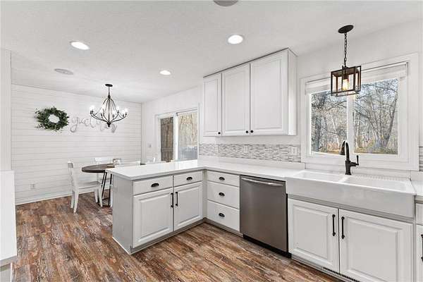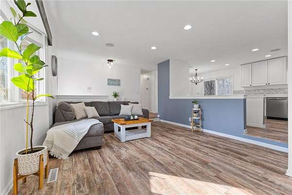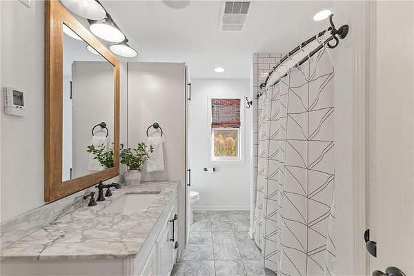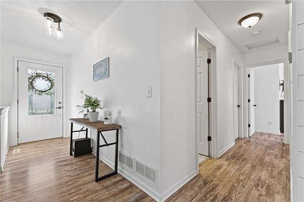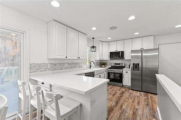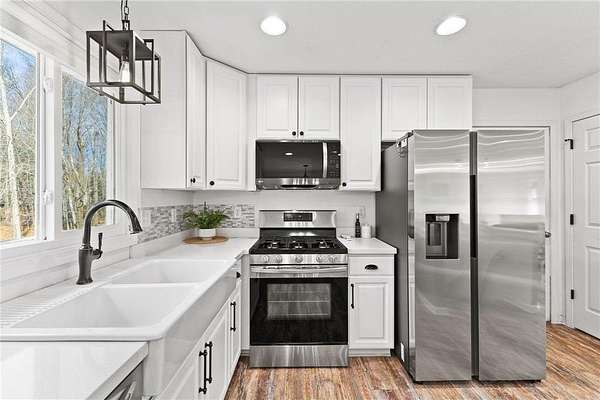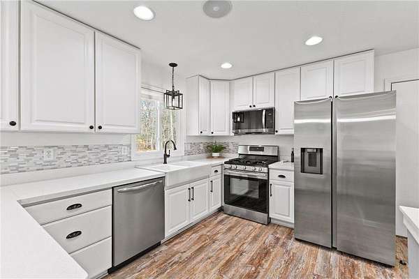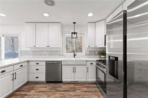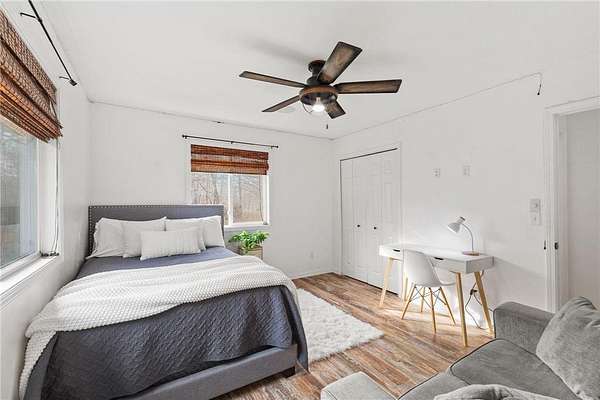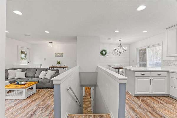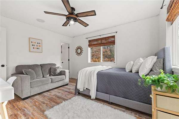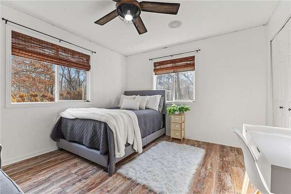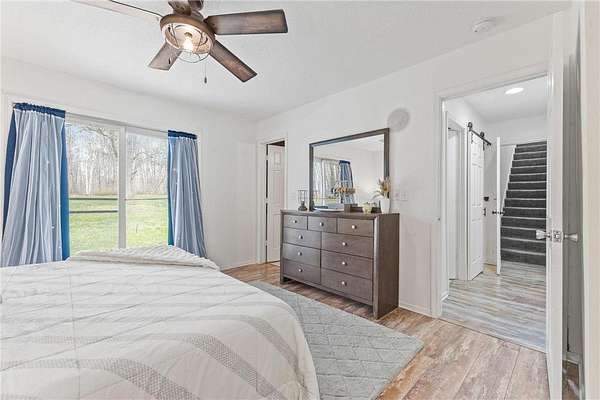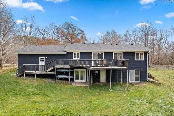 Welcome to your Home Sweet Homestead on 6.5 acres of privacy with a pond and trails throughout! Gated, concrete driveway and huge, fully fenced in front yard for safe playing. Home was fully renovated in 2016 and offers open concept with updated flooring, quartz counter tops in kitchen, updated cabinetry and light fixtures throughout, tiled floors and marble counters in bathrooms, heated floors in main level bathroom and paint throughout. New microwave, stove and refrigerator in 24/25. New Washer/Dryer 2021. 3 Bedrooms on main level including a Primary that walks through to large bathroom. Additional washer/dryer hook ups in main level bathroom closet for main level living! Lower level holds additional huge primary bedroom with walk in closet, walk through to another full bathroom and walks out to patio. Oversized 5th bedroom also walks out and could be used as office, work out or craft room! Cozy family room for all of your relaxing and entertaining needs! Large deck with spectacular views for those amazing summer nights and BBQ's! Oversized garage freshly painted with cabinets for additional storage and a garage fridge. New roof in 2023. New well pressure tank in 2024. Charming 12x8 storage shed added in 2021 for additional outdoor storage needs. This is the one you have been waiting for- schedule your showing TODAY!
