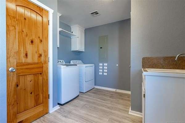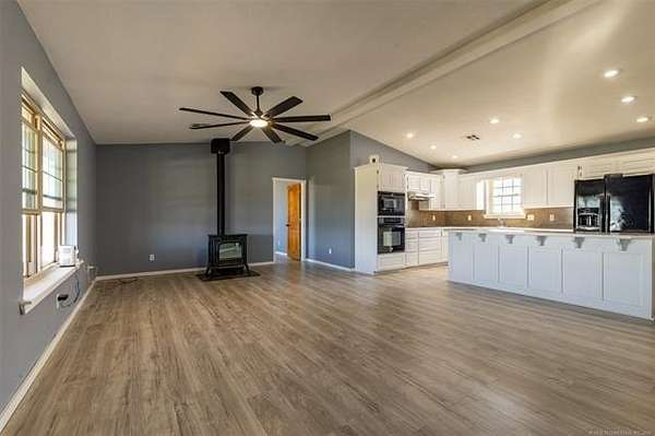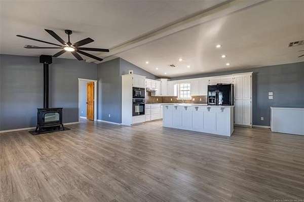 Experience the perfect blend of modern luxury and country charm with this fully remodeled home on 31.63 acres in beautiful Elmore City. Every inch of this property has been updated to deliver comfort, style, and peace of mind. Inside, you'll find brand-new flooring, fresh interior paint, upgraded drywall, modern lighting, solid wood interior doors, energy-efficient windows, sleek countertops, and all-new appliances. The home is all-electric, combining efficiency with contemporary design. Step outside to enjoy over 31 acres of Oklahoma countryside. Three acres are fully enclosed with a 10-foot chain-link fence, perfect for pets, livestock, or a private garden, while the remaining acreage is surrounded by durable barbed-wire fencing, giving you space and security without sacrificing open views. The property also features raised garden beds, two 3,000 sq. ft. greenhouses, and a 5,000 sq. ft. serviced metal building featuring electrical installation and plumbing, offering versatile use for workshops, storage, or business operations. The property is ideally located just 2 miles from downtown Elmore City, offering local shops, dining, and schools. Elmore City Lake is only 5 minutes away, where you can enjoy fishing, boating, and outdoor recreation. For healthcare and major shopping, Pauls Valley is a quick 15-minute drive, while Ardmore is just 35 minutes away, and Oklahoma City is about an hour north, making this an ideal country escape with easy access to everything you need.