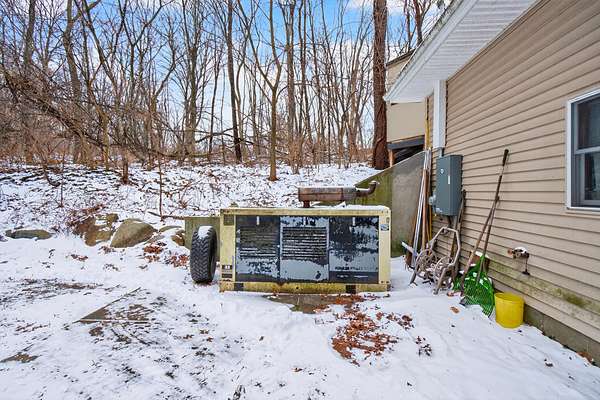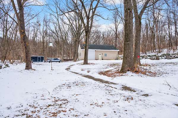 Experience the ultimate country retreat in the highly sought-after Western School District. This stunning walkout ranch offers the perfect blend of modern luxury and peaceful rural living, featuring granite countertops throughout and a tankless water heater for endless comfort. The main level welcomes you with a spacious open kitchen and living area designed for easy flow. The large master bedroom serves as a private sanctuary with dedicated his and her closets, while the beautifully tiled main floor bathroom and laundry room includes double sinks and high-end finishes. Step outside onto the expansive deck to take in the views of your private wooded property. Entertaining is effortless in the finished walkout lower level, where you will find a large recreation room and a full wet bar with a slider leading directly to the patio. This level also hosts two additional generous bedrooms and an incredible fully tiled bathroom featuring a custom walk-in triple rain shower. The attached 2.5 car oversized garage is heated and fully equipped with built-in shelving and cabinets for maximum organization. The property is engineered for total independence and versatility with two separate gas meters, two septic tanks, and two on-demand generators, including a 20,000 watt unit for the house and a 35,000 watt unit for the outbuilding. The impressive 30 by 40 stick-built outbuilding is far more than just a shop. It features concrete floors, full heat and air conditioning, a full bathroom, and is already plumbed for a kitchen. With natural gas service and two large overhead doors measuring 10 by 10 and 10 by 16, this space is ready for any hobby, business, or guest arrangement you can imagine.