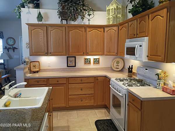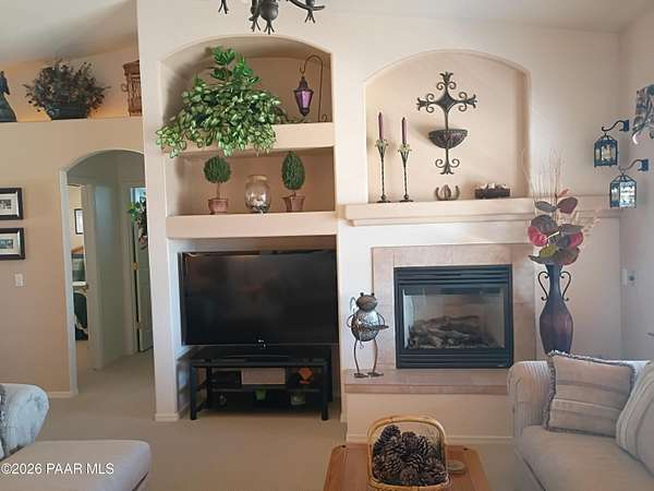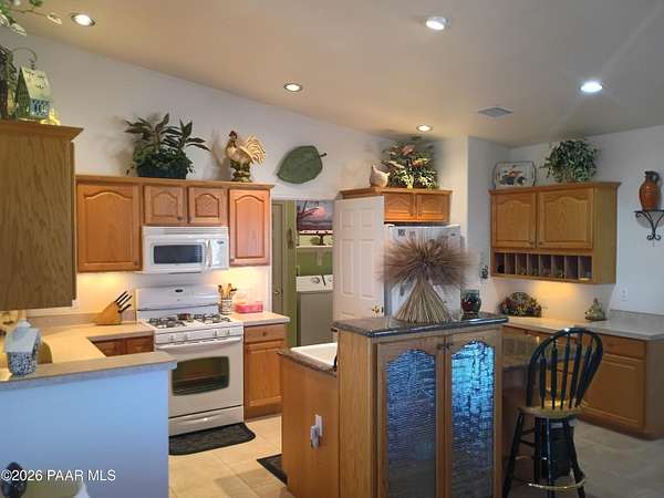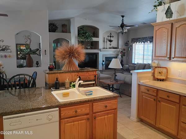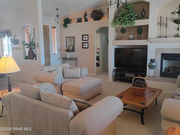 Gorgeous Views surround this open, , immaculate, gently used , barely lived in home with 2x6. construction in the Ravencrest Subdivision. 3 bedrooms and 2 full baths You enter through an 8' wooden door into a beautifully decorated Great Room style area that includes the kitchen and dining room.The gas fireplace in the living room, gives off a warm, glowing atmosphere. There are pot shelves with lights. The kitchen has oak cabinets with under cabinet lighting. and built in Desk. The window sills in the dining/living room are oak. Split floorplan with nice sized bedrooms. The Master bath has double sinks and marble like vanities. Good sized walk-in closet and a garden tub. Many linen closetsOut back you have a covered, screened in patio with views of Little Thumb Butte, Mzny linen Mountain, and Mingus mountain. The propane tank is buried. 2 1/2 car garage with insulated doors. The home sits on 2.15 acres with so much potential for, toys, animals or other hobbies.This one is a beauty!
