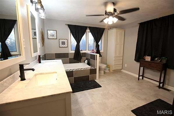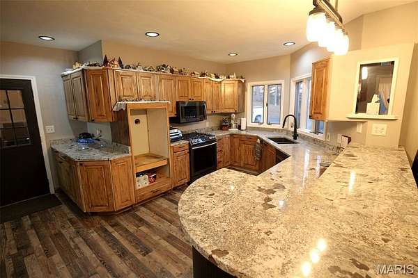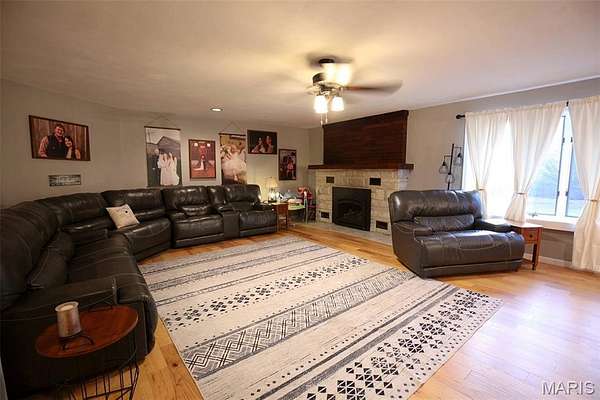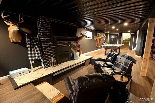 The finished basement was completely renovated and features metal ceilings with recessed lighting, new flooring, office/bedroom, and a full bath, creating a comfortable and versatile living area. Major updates throughout the home include a metal roof (2022), HVAC (2021) well pressure tank (2022), tankless water heater (2022), all new plumbing, vanities, Moen bath fixtures, water softener, and two new gas fireplace inserts.