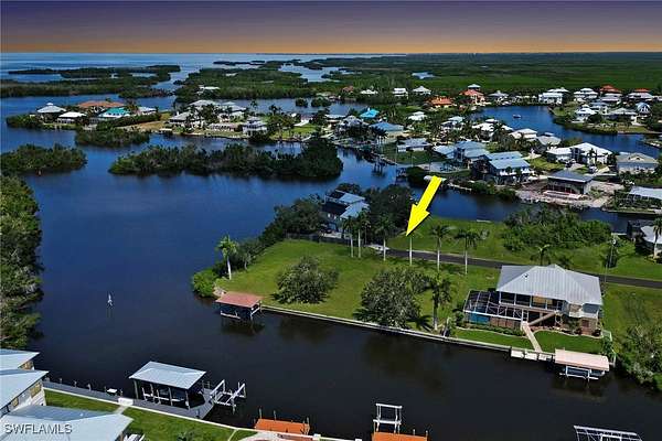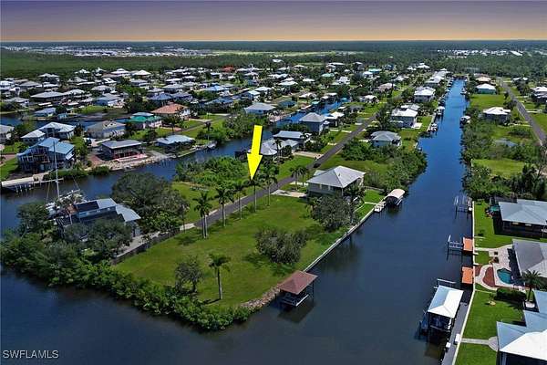 Discover a rare gem in the heart of Southwest Florida's coveted Pirate Harbor community-a breathtaking half-acre lot that embodies coastal paradise. This oversized, tip-lot property, the only one of its kind available, boasts over 300 feet of pristine waterfront, offering unrivaled sailboat access to the open waters of the Gulf of America and beyond. Imagine casting off from your private dock, gliding effortlessly toward adventure, with the shimmering expanse of open water at your doorstep. Cleared with plenty of fill dirt on site, this stunning lot is a blank canvas ready for your dream home, where every day begins with serene water views and ends with vibrant, awe-inspiring sunsets. The natural beauty of Pirate Harbor surrounds you, with quick access to the region's enchanting barrier islands-perfect for exploring hidden coves and pristine beaches. Whether you're an avid boater, angler, or simply crave the tranquility of waterfront living, this lot delivers a lifestyle of unparalleled freedom and splendor. With the potential to split into two parcels, the possibilities are endless. Conveniently located just 15 minutes from Punta Gorda Airport, this slice of heaven combines seclusion with accessibility. Don't miss this extraordinary opportunity to own a piece of Pirate Harbor's coastal allure. Seller financing available with flexible, negotiable terms-contact us for details!