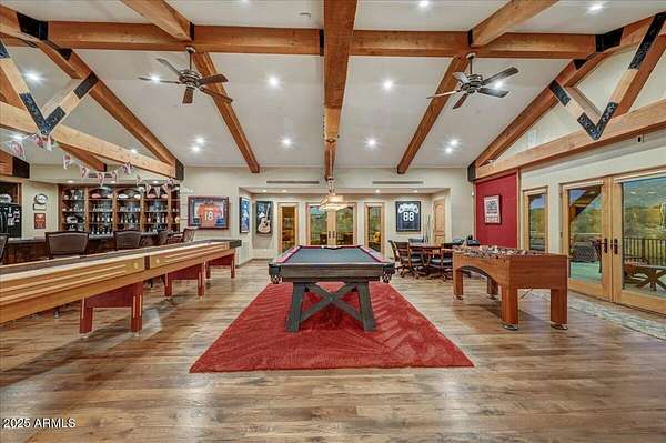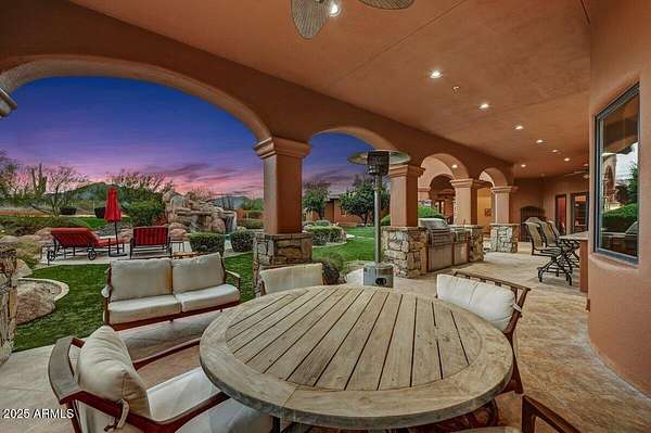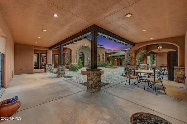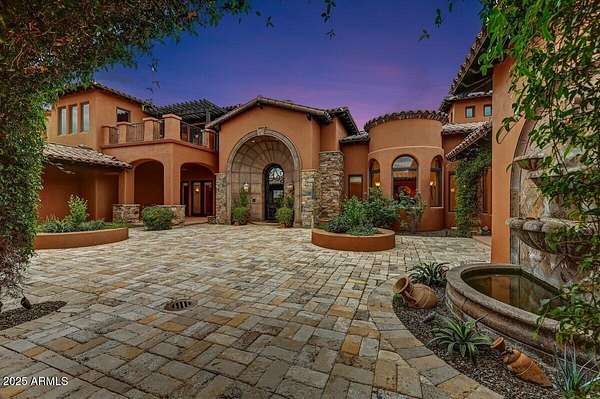 Behind the guarded gates of Prado Estates-Scottsdale's most coveted acreage community lies a Mediterranean masterpiece where luxury, privacy and panoramic beauty converge. Set on over 4 acres, on an elevated lot in North Scottsdale, this fully reimagined estate commands sweeping mountain vistas and shimmering city lights, offering an extraordinary lifestyle rarely found in today's market. An extensive, to the studs remodel, in 2023, encompassing over 1 million dollars in updates, blends timeless craftsmanship with modern refinement. Spanning more than 12,500 square feet, the estate includes a grand main residence and private guest house, each designed to offer comfort, elegance and independence for family and guests alike. From the moment you enter in the secluded Tuscan style courtyard, serenity unfolds. Inside, soaring beamed ceilings, rich stone and wood floors, and dramatic fireplaces create warm yet sophisticated living spaces. The gourmet kitchen equipped with Wolf and Sub-Zero appliances anchors the home, flowing seamlessly into expansive living and entertaining areas.The primary suite is a private sanctuary, featuring a spacious sitting room, a spa-like en-suite bath, and colossal walk-in closets. Designed for both grand gatherings and intimate moments, the home features a private theater, spa level fitness room, wine room, office and a remarkable bar and gameroom unlike anything in Scottsdale. Despite the home's two level design, effortless living is ensured with a private commercial grade elevator providing seamless access throughout. Outdoors, the estate transforms into a private resort. A custom diving pool with slide and spa shaded ramada, putting green and 3 observation decks create boundless opportunities to entertain or unwind all framed by Arizona's most breathtaking scenery. Car collectors will be thrilled with the extensive garage facilities. The property showcases a generous 7-car garage, with significant storage space for a virtual golf simulator. Close proximity to Scottsdale's finest dining, shopping and Loop 101 access, this estate personifies the ultimate expression of Scottsdale's luxury living.This rare combination of a private, amenity-rich estate and an accessible, prime location makes this property an unparalleled offering in the Scottsdale luxury market.