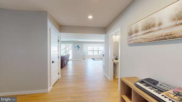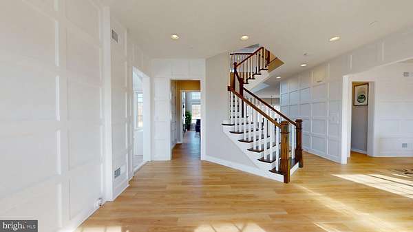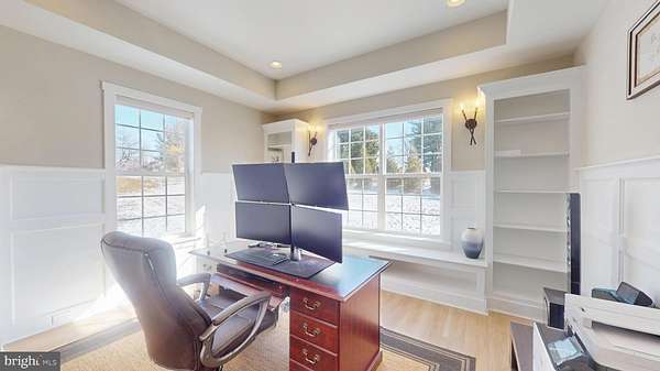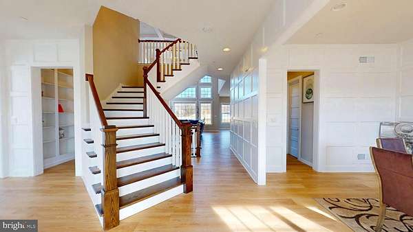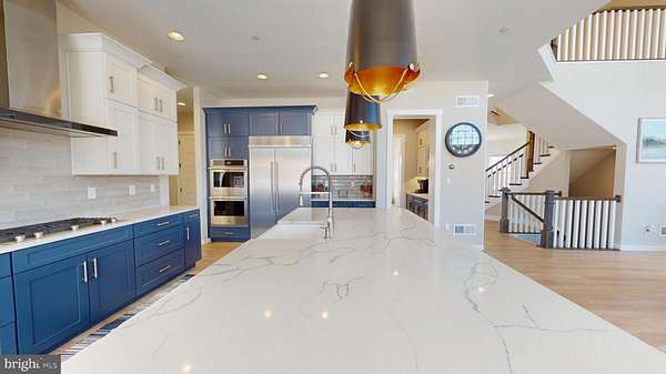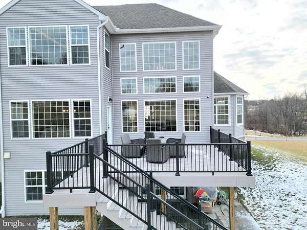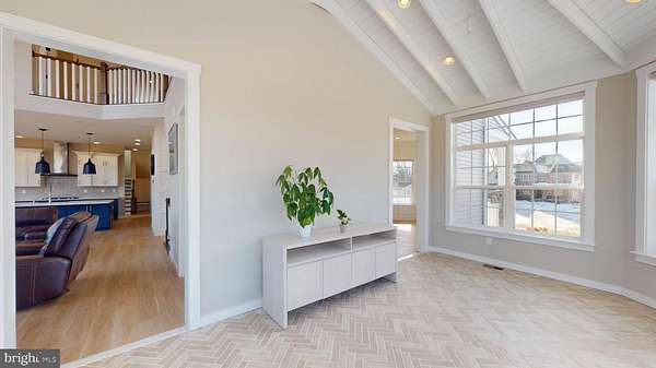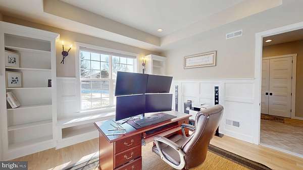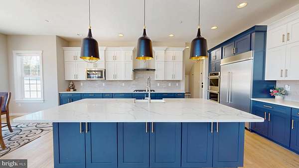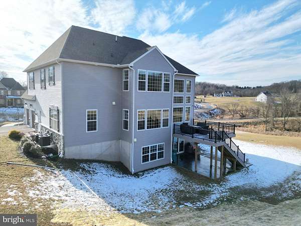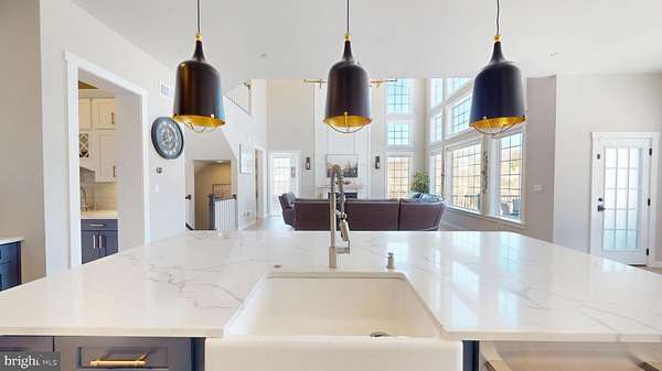 Set on a picturesque 3.6 acres within The Sanctuary at Liberty Hills, this extraordinary residence offers a rare blend of elegance, privacy, and thoughtful design. Surrounded by natural beauty, this Devonshire Heritage model delivers an elevated living experience with four bedrooms, three full baths, and two half baths, complemented by extensive custom upgrades throughout. The impressive foyer introduces sophisticated architectural detailing and leads to beautifully appointed formal spaces on either side. The living room is enhanced by rich trim work and opens to a light filled conservatory where expansive windows and a soaring ceiling create an atmosphere of calm refinement. A cozy library nook provides a graceful connection to the family room, adding both charm and functionality. The main living area unfolds into a breathtaking two story family room designed for both everyday comfort and upscale entertaining. A wall of windows frames serene views of the backyard, while a gas fireplace, coffered ceiling, detailed millwork, and statement chandeliers anchor the space with timeless style. The adjoining kitchen is a true centerpiece, featuring a striking two tone cabinetry design with floor to ceiling storage, soft close functionality, and ambient under cabinet lighting. Quartz countertops, a generous island, farmhouse sink, designer tile backsplash, and professional grade JennAir appliances elevate the space, while a walk in pantry and butler's pantry with prep sink ensure effortless hosting. The breakfast area offers a welcoming space for casual dining and opens directly to the rear deck for seamless indoor outdoor living. Nearby, a private study with built in shelving and wainscoting provides a quiet retreat, while the entry area includes a powder room, garage access, rear staircase, and ample storage. Upstairs, the open hallway overlooks the family room below and leads to a stunning owner's suite featuring a tray ceiling with shiplap detail, dual walk in closets, and a spa inspired Venetian bath. This luxurious retreat boasts a freestanding soaking tub, expansive walk in shower, double vanity with quartz counters and penny tile accents, private water closet, and refined tile flooring. A second bedroom enjoys its own en suite bath, while two additional bedrooms with walk in closets share a beautifully designed Jack and Jill bath with dual vanities. A conveniently located upper level laundry room completes the floor. The finished walk out lower level expands the home's versatility with generous living space, a cafe style serving area with sink and microwave, a half bath, and access to the covered patio through a three panel sliding glass door. The outdoor setting is peaceful and private, offering a tranquil backdrop for relaxation and entertaining alike. A rare offering of privacy, craftsmanship, and timeless design, this exceptional home invites you to experience refined living at its finest. Schedule your private showing and discover the lifestyle that awaits.