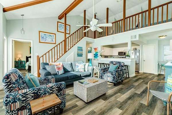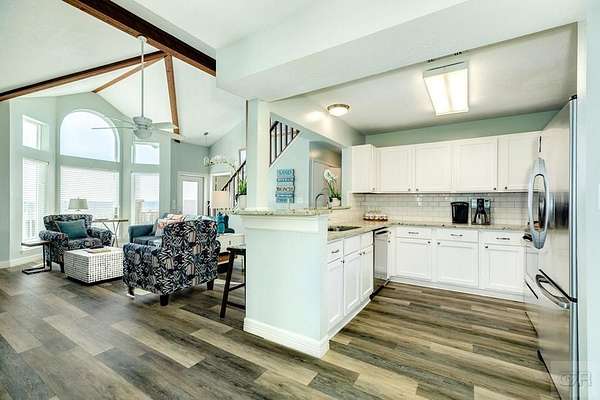 GORGEOUS BEACH FRONT HOME in popular Surfside Beach! Some of the many updates & improvements include new flooring & subflooring on main level (2026); new dishwasher & microwave (2026); replaced deck & stairs (2025); replaced roof & gutters & HVAC system (2024); exterior replaced with Hardi-Plank siding & painted (2024). This wonderful home has been a successful vacation rental and family weekend home. Open floorplan features a large living area with amazing Gulf views, vaulted ceiling, exposed wood beams and wood accent wall. A separate dining area is perfect for family meals & games. The spacious Primary Bedroom is upstairs and also has incredible views of the Gulf. Two additional bedrooms plus a loft for the kids can accommodate lots of guests. No HOA or maintenance fees, this home has a strong rental income history and is turn-key ready for you to use as an investment property, weekend getaway or full-time residence. Great home at a GREAT price - just in time for summer!