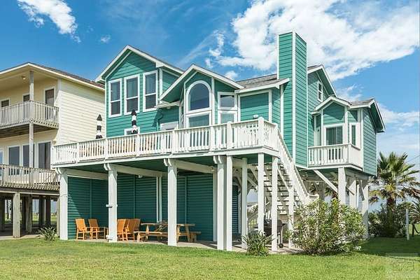 From Lake Jackson, take Hwy 332 toward Surfside; go over the bridge and take a left at the light onto Blue Water Hwy, home is 2.5 miles on the right. From Galveston, cross the San Luis Pass bridge and continue on the Blue Water Highway to the prperty, will be on your left