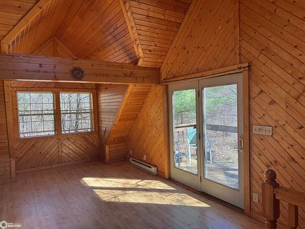 Have you ever dreamed of living in a place surrounded by lush greenery & flowers, overlooking your own private pond on your own private lane, & just 10 minutes from the square? Here's your chance! This property has it all. The house is a cedar sided home built by the current owners filled with lots of room & comfortable spaces. This truly is an "inside-out" experience with views of nature from every window. Country style porches & walk outs surround this home from all directions. As you walk in the front door, your 1st experience is the expansive open living & dining area with high ceilings which lend a feeling of spaciousness. The large kitchen includes an ample eating area with huge windows overlooking the woods & wildlife. The kitchen is fully equipped with a generous supply of counters & cabinetry. The 1st floor has a bedroom suite with closets & a 3/4 bath. There is an additional smaller bedroom on the main floor next to the utility room & a door leading to the 2 car attached garage. Upstairs is the primary suite with a full bath & 2 large walk-in closets & a small balcony. A quaint bonus bedroom is located up the stairs. The walkout lower level features 2 bedrooms (or a family room) & a full bath. There is an additional detached 2 car garage with a 1 bedroom wood paneled apartment & a small deck overlooking the pond. The pond comes with a dock & patio area for all your outdoor entertainment with a large fire circle & adjoining walking paths. Must See !