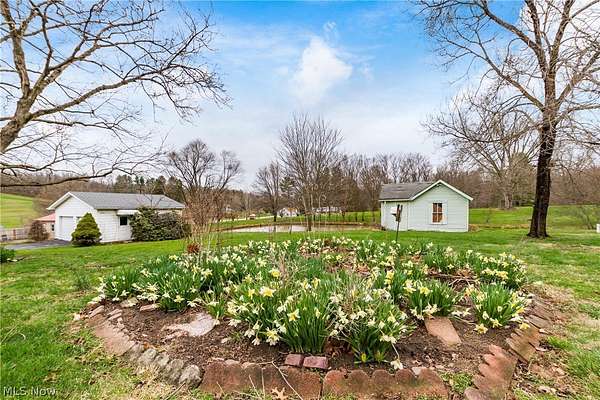 Charming ranch home situated on 4.83 scenic acres, offering the perfect blend of comfort and opportunity. This 3 bedroom 1 bath residence features convenient single-level living, an attached carport, and a spacious 2 car detached garage ideal for storage, hobbies, or workshop space. Enjoy the peaceful setting complete with a beautiful pond, providing a serene backdrop for relaxing or entertaining. The expansive acreage offers excellent potential for future development, with an ideal building site located on the rear of the property - perfect for constructing your dream home while maintaining privacy from the road. Located within Franklin Local Schools, this property combines rural tranquility with practical convenience. A rare opportunity with endless possibilities.