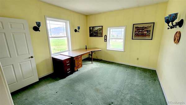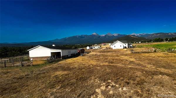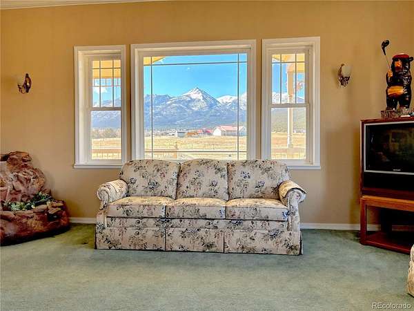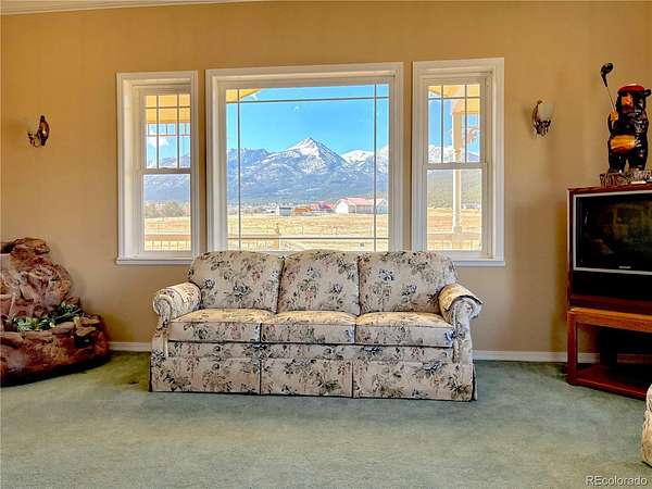 Set on 9.29 acres with sweeping views of the Sangre de Cristo Mountains, this distinctive property offers durability, versatility, and exceptional mountain living. Built with steel framing for enhanced strength and resilience, the 3-bedroom, 4-bath home provides a flexible layout suited to a variety of needs. The main level features a bright, open design with a full kitchen, two bedrooms, and two bathrooms. The fully finished walkout basement adds a third bedroom, an additional bathroom, and a wet bar with extended living that can be used as additional separate living space. Enjoy panoramic alpine views from two covered decks, perfect for relaxing or hosting gatherings. Valuable senior and junior water rights provide reliable supplemental irrigation for summer use and livestock support. The fully fenced acreage is well-suited for horses or agricultural use, with irrigated pastures supplied by augmented water. A substantial barn is ready for livestock, while a designated garden area supports homegrown produce. A secluded wooded portion of the property offers privacy and a peaceful setting for walking or quiet enjoyment. Extensive additional attached sq footage enhances functionality, including two standard garages, one oversized garage, and a smaller garage ideal for UTV or ATV storage. The largest garage features a built-in air compressor system servicing a well-equipped woodshop and exterior work areas. The smaller garage includes a livestock washing station. Additional storage rooms, utility areas, and quality lighting add to the property's efficiency and is where you will find the 4th bathroom. There is RV parking with water, sewer and 30 amp hookups. Whether you’re seeking a working ranch, private retreat, adaptable homestead with room to grow, or an income producing investment, this property represents an outstanding opportunity in a remarkable Colorado landscape.