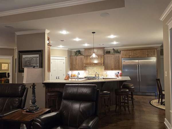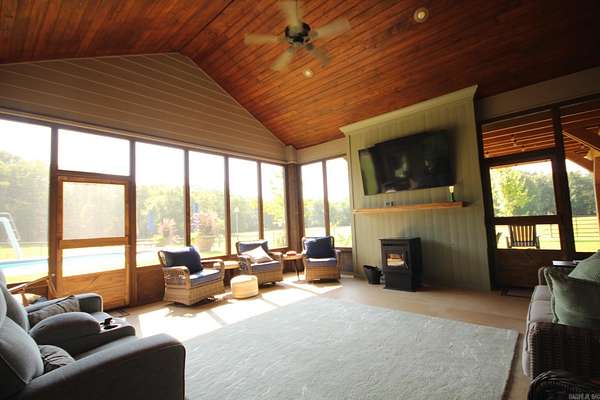 CUSTOM BUILT. 3 bedroom, 2.5 bath with approx. 3334 Sq. Ft. of living space. Office could be 4th bedroom. Custom Hickory cabinets with soft close, built/installed by Pender Craft Cabinets throughout house with Quartz countertops. Also, an entertainment center in the living room by Pender Craft Cabinets. Crown molding and 6-inch base board throughout. Finished garage with 3 bays, insulated doors with heavy-duty openers, heated & Cooled. Lennox 3 zone heat pump, whole house generator system. Nine station lawn sprinker system. Oversized Cast Iron Clawfoot tub and large shower. Huge walk in Master closet with custom shelving and built in clothes hamper. Kitchen Aid Commercial Gas Range 6 burners plus griddle, dual convection ovens, Frigidaire commercial style built in Refrigerator/Freezer. Walk in Pantry, bar with space for 6 barstools. Screened 20 x 20 porch with custom vinyl curtains, pellet stove and TV. Flagstone patio with covered Pergola, has electric and gas outlets for cooking. Inground (18 by 36) pool with cabana, toilet and outdoor shower, plus hot tub. 34.77 acres (18 acres timber). Covered concrete dog kennel (10 by 20 plus outside run).