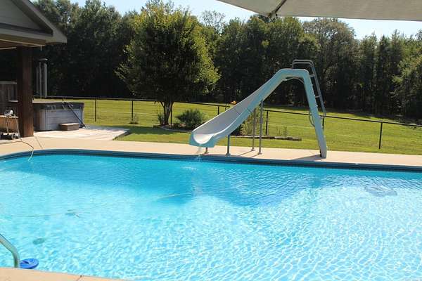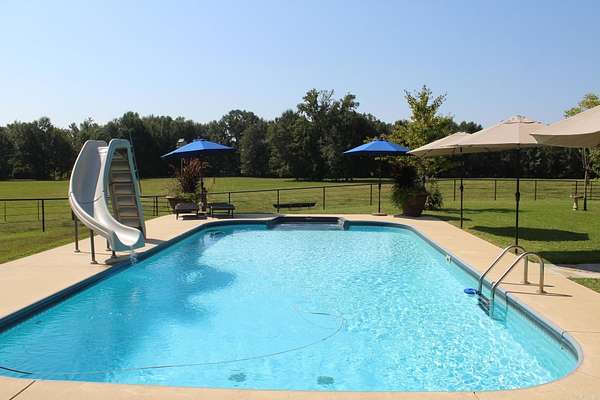 - Barns/Buildings, Covered Patio, Fully Fenced, Inground Pool, Iron Fence, Lawn Sprinkler