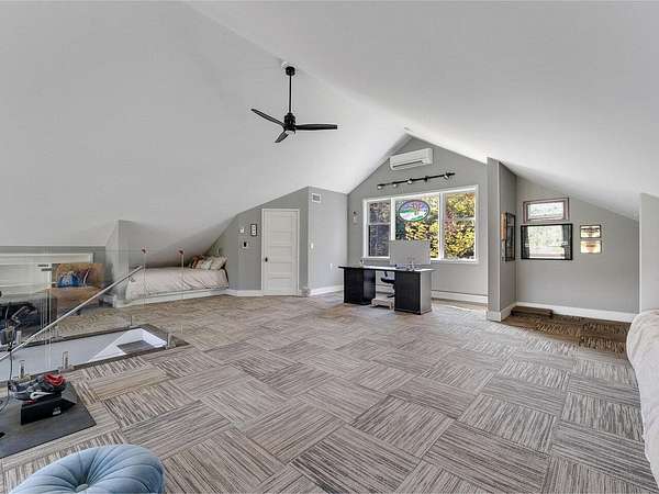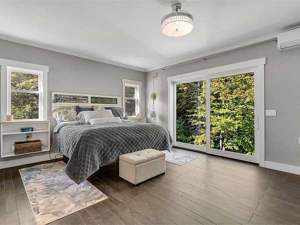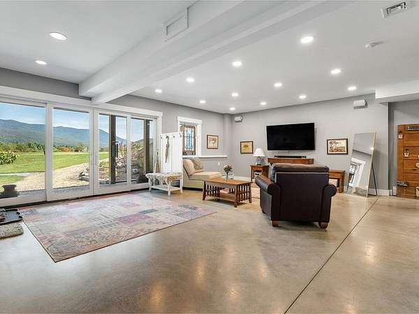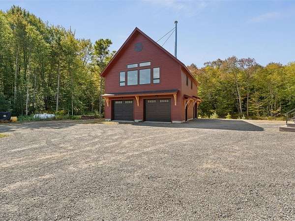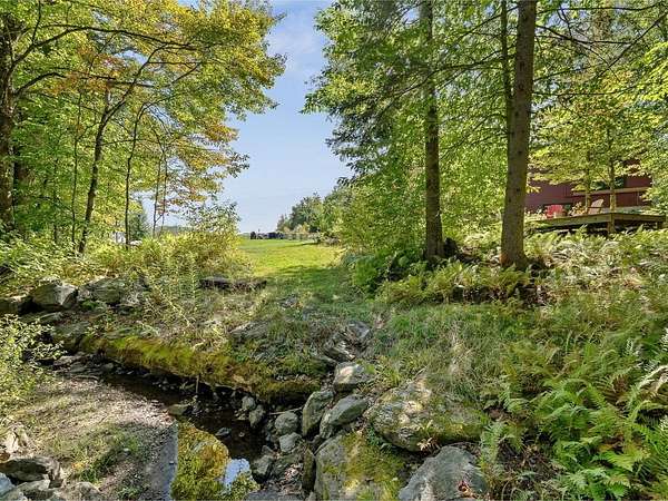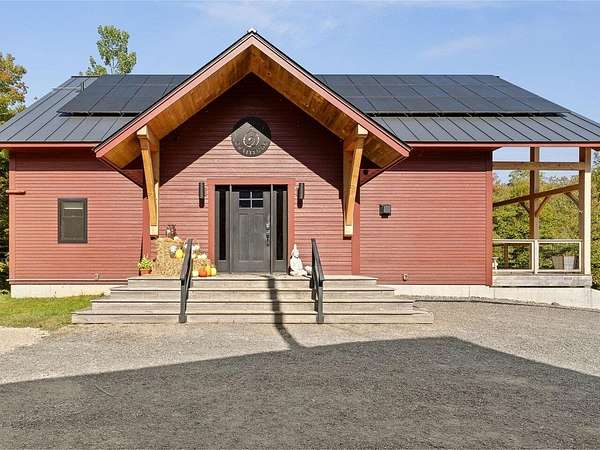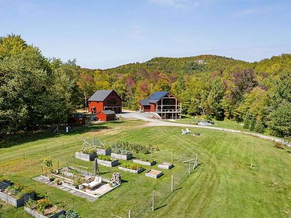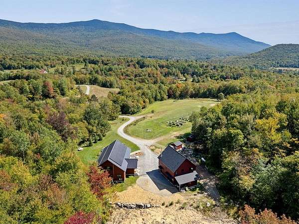 Alpenglow Meadows: A custom modern chalet on 24+ pristine acres with two deeded lots. This luxury property offers complete privacy with stunning mountain views and sustainable living. The open-concept kitchen features high-end appliances, a quartz waterfall island, and a custom maple bar, flowing seamlessly into dining and living areas with lofted ceilings and a 10' x 36' covered porch with timber frame accents. The first-floor primary suite allows for aging in place, while the loft and walk-out lower level provide flexible entertaining spaces. The landscape inspires with established gardens, fruit orchard, specialty nuts, and hundreds of sugar maples for tapping. Restored wetlands attract native wildlife, private forest trails invite exploration, and a babbling brook offers serenity. Adjacent lot #243 features a stunning 18' x 48' Douglas Fir barn with a full loft and soaring mountain views. Best of all, permits are in place for a 4-bedroom home - perfect for expansion or subdivision. Located just 20 minutes from Mad River Valley and 12 minutes to downtown Bristol, this peaceful property offers the perfect blend of nature and luxury for homesteading or personal escape.