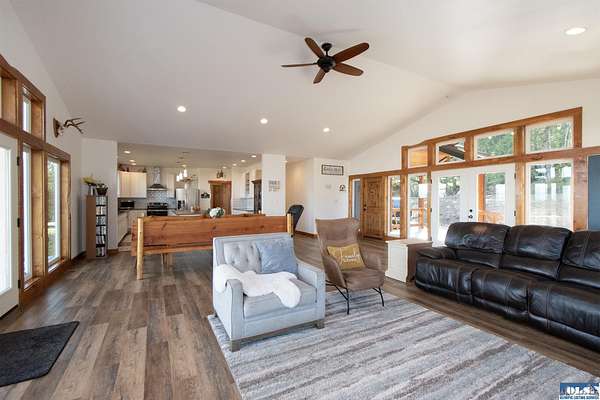 A rare opportunity to own 10 sun-drenched acres with commanding views of the Strait of Juan de Fuca and Canada, ideally situated between Port Angeles and Sequim within the Olympic Peninsula’s coveted sun belt. Thoughtfully configured as a cohesive and versatile property, this offering provides a harmonious balance of established living, future potential, and open land. A custom-built Craftsman residence anchors the homesite, introduced by a grand covered entry that reflects the quality and warmth found throughout the home. Inside, the interiors are light-filled and thoughtfully appointed. A wood-burning stove serves as a cozy focal point in the living area, complemented by a dedicated wood storage room—a practical and charming feature for Northwest living. The gourmet kitchen is designed to impress, featuring a substantial 10-foot island, a large walk-in pantry, abundant cabinetry, and expansive windows that frame the stunning water views. Generously proportioned living spaces continue throughout, including a spacious laundry room and a fully finished garage. The primary suite offers a peaceful retreat with serene water views, a luxurious soaking tub, and a walk-in shower. A generously sized crawlspace provides additional versatility, offering ample room for canning, hobby space, or extended storage. The 10-acre property presents excellent flexibility, with open land suitable for a future residence, barn, or hobby farm. The northern portion offers additional value as it may be sold separately, presenting a compelling opportunity for income generation or long-term investment while maintaining privacy and usability of the primary homesite. An established, portable vacation rental enjoys strong seasonal occupancy, creating excellent income potential or private guest accommodations. A dedicated RV hookup with septic, power, and water further enhances hosting opportunities. A year-round creek borders the western boundary, providing a peaceful natural setting perfect for camping under expansive night skies. With minimal light pollution, the property offers exceptional stargazing. Additional features include invisible dog fencing and a convenient exterior hot-water spigot—ideal for rinsing pets, gear, or equipment after outdoor adventures. Beautiful quilted maple figured live-edge wood trim adds a distinctive, custom touch, showcasing the craftsmanship throughout the home. With nearby backcountry access and endless opportunities for recreation, this exceptional property places you at the doorstep of Olympic National Park—with Port Angeles proudly known as the “Gateway to Olympic National Park.”