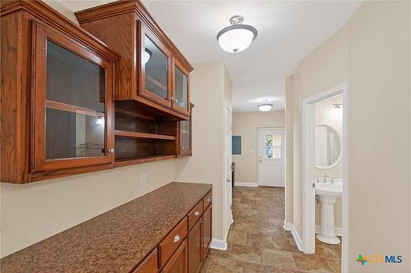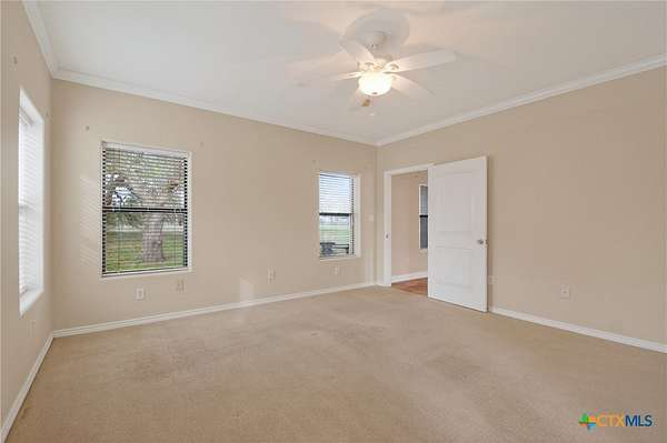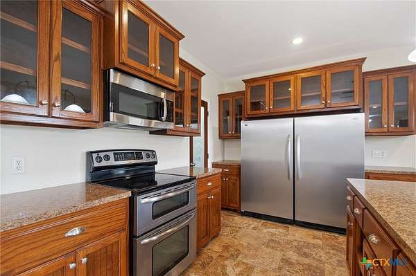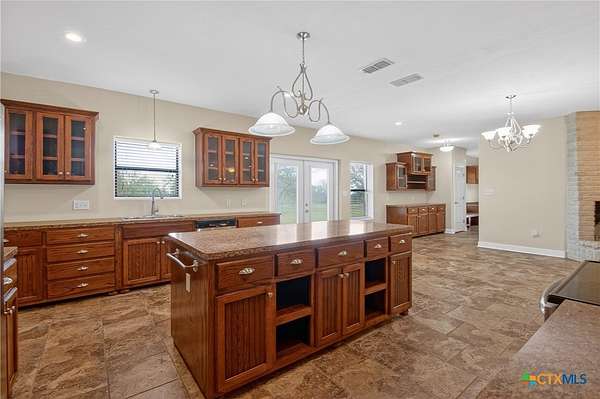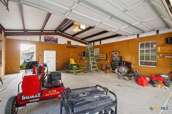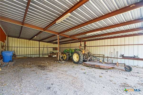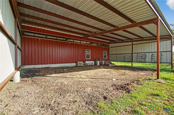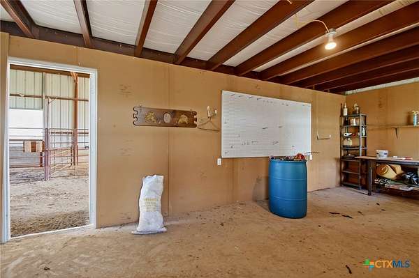 Charming custom farmhouse on 15 acres just outside Goliad - 4 bed, 4 bath, 2,800 sq ft (built 2009) combining country lifestyle with modern comfort. The heart of the home is a large chef's kitchen with custom cabinetry, a generous island, double oven and oversized refrigerator, flowing into bright living spaces and two expansive covered porches under durable metal roofing - ideal for morning coffee or evening entertaining. Practical and private, the property includes a detached two-car garage, whole-house Generac backup system, a 24x20 workshop with attached 40x28 lean-to and 24x20 carport, plus a 16x12 Morgan building and 20x20 chicken coop. Equestrian-ready with a 48x32 drive-through horse barn featuring four stalls, tack room, and an attached 48x30 lean-to. Comfortable, well-appointed, and built for country living, this home offers ample space for hobbies, animals, and equipment while remaining minutes from Goliad amenities.