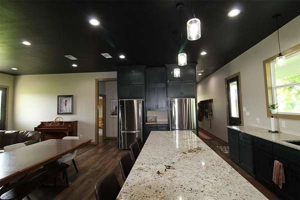 Beautiful modern farmhouse perched on a hill in Simms ISD, surrounded by 37 rolling acres and picturesque views. This country retreat was built in 2023, and features 2 spacious primary suites, each with their own oversized baths & walk-in closets, with hook-ups for washer and dryer. You are sure to enjoy the open floor plan and 10 foot ceilings, with an additional half bath for guests. The land is perimeter and cross fenced, ready for horses, cows, chickens, and gardens, complete with animal pens and a 30'x60' barn with 10 foot leans, and a 50'x40' extended roofline in the back. The home is equipped with propane and a whole-house generator for added comfort and reliability. With your own land stretching on 3 sides, you'll love the privacy and peaceful setting. As an added bonus, a well-maintained mobile home at the front of the property is currently leased for $1250 per month, offering immediate income potential.