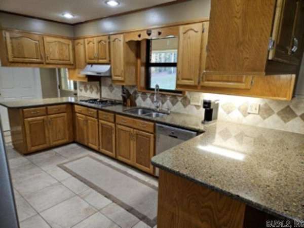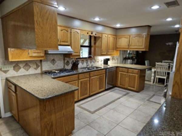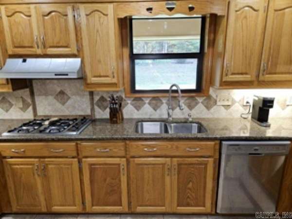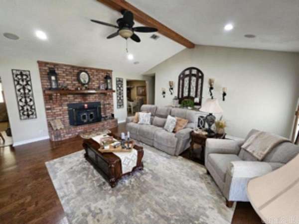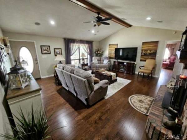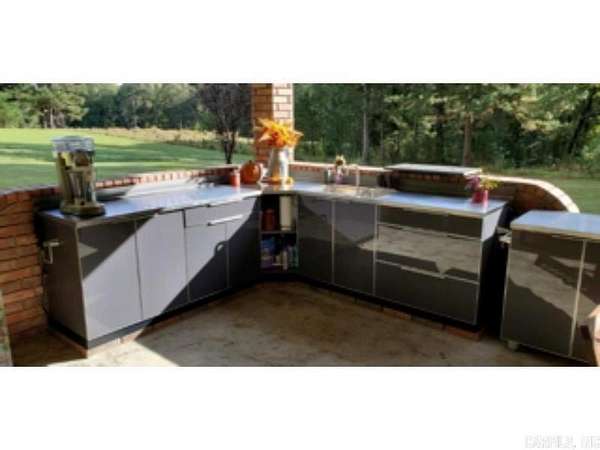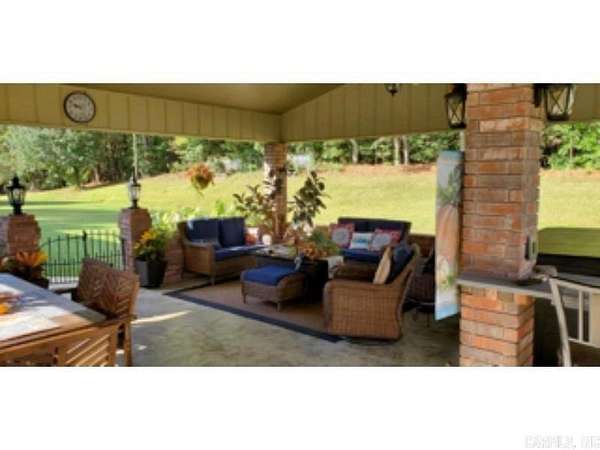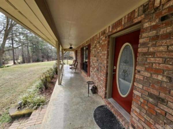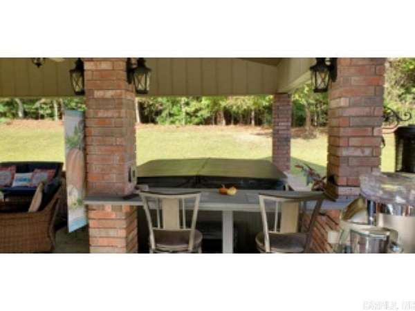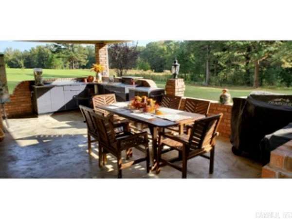 This 4 BR/2 BA ranch-style brick home offers 2,376 sqft of space, situated on a 3-acre (M/L) lot just outside Camden city limits. Enjoy the convenience of city water, natural gas, underground utilities, & ARIS internet. Inside, you'll find hardwood & tile flooring, custom cabinetry, built-ins, & quartz countertops. The thoughtfully-designed kitchen also features a pantry w/ drawers & a workspace/desk area. A bonus room provides the option for a 4th bedroom, office, or media room. The living room boasts a vaulted ceiling & a woodburning fireplace w/ insert, while the master suite includes a 3'x6' walk-in shower & double closets. This property truly shines outdoors w/ a fully-equipped outdoor kitchen featuring stainless steel cabinets, an 8-ft hot tub, TV, & dining bar. The landscaped grounds include a patio/breezeway, sprinkler system, greenhouse, small pond, & multiple outbuildings - a 24x40 heated/cooled shop w/ half bath & attic, a 30x60 pole barn, & additional storage. A three-car attached garage w/ floored attic provides even more storage. Additional acres are also available for future purchase. This one-of-a-kind property offers space, privacy, & endless amenities.