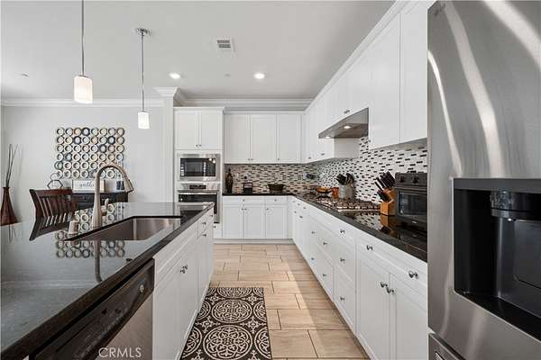 Welcome to this stunning, well-maintained home located in the highly sought-after Avanti community in the West Hills area of Valencia. Ideally situated at the end of the street, this home offers added privacy and a desirable location within the neighborhood. This ideal floorplan includes 4 spacious bedrooms and 3 bathrooms, including a convenient downstairs bedroom and full bathroom—perfect for guests or multi-generational living. A versatile second-floor loft provides the option to easily convert into a 5th bedroom, home office, or bonus space. The gourmet kitchen is equipped with stainless steel appliances, ample counter space, a large island and abundant cabinetry. Step outside to an entertainer’s backyard featuring a firepit, covered patio, and grassy area—ideal for relaxing or hosting gatherings. This private outdoor space offers a peaceful retreat for both quiet evenings and lively get-togethers. Residents of the Avanti community enjoy the resort like pool and spa. West Creek Park provides scenic outdoor recreation. The home is also conveniently located near top-rated schools, shopping, dining, and easy freeway access.