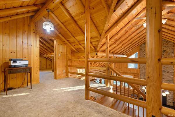 *OPEN HOUSE, SUN, JAN 18, 2-4 PM * Tucked away on 10 tranquil acres, this breathtaking 2,800 sf authentic LOG CABIN beckons you to leave the chaos of city life behind, inviting you into a timeless retreat where rustic charm meets masterful craftsmanship. Drive up the lane & you will find yourself entering a private oasis, escaping the hustle of city life. This well maintained log home was built with the highest standards & techniques that have proven to withstand the test of time. In the living room, cozy up next to the wood burning stove & enjoy a grand, two story stone fireplace. The entire house boasts the classic beauty of a log home, with much of the trim work & cabinetry hand made by the master carpenter who built the house. Step onto the expansive deck from either the primary bedroom or living room & be captivated by the serene view of the pond & sprawling pastures. The basement is completely finished & includes a full kitchen, large bedroom with walk-in closet, full bath & its own walk out deck.