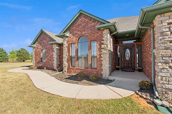 Discover country comfort and modern convenience in this lovely three-bedroom, two-bath 1911 sq ft brick home on 8.05 peaceful acres, accented with stone details and beautiful windows that fill the space with natural light. Inside, thoughtful built-ins, huge closets, and abundant storage complement the spacious living areas, while an inviting fireplace creates the perfect spot to gather on cold winter nights. Double doors open directly to the beautiful pool area for effortless indoor-outdoor living. A large shop and three-car garage provide exceptional workspace and storage. Located just off Highway 39 with quick access to I-44, Blanchard, Chickasha, Winter Creek Golf Course, and more, this move-in-ready home sits in the desirable Middleburg School District with easy transfer options to surrounding schools, offering a perfect blend of privacy, functionality, and convenience.