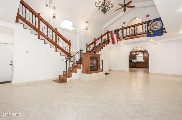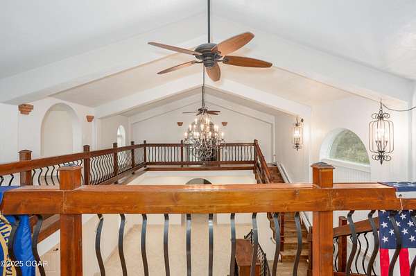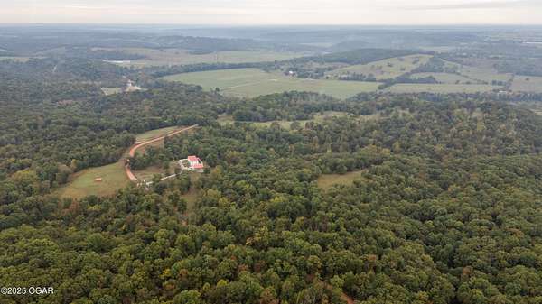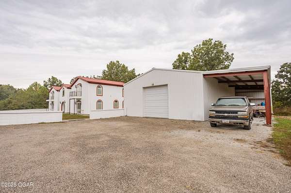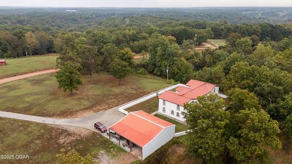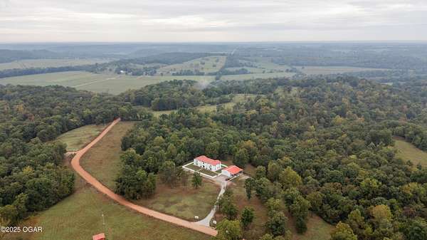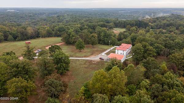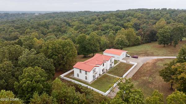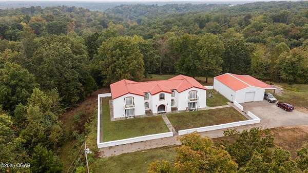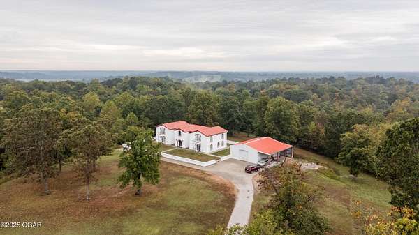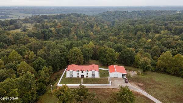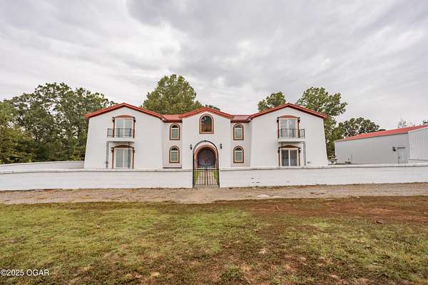 Discover this stunning 33+/- acre property offering a perfect blend of seclusion and beauty. The land features a mix of pasture and mature timber, highlighted by two major ridge tops and an abundance of deer. The centerpiece of the property is a 4,000+-/- sq ft Spanish-style home with 3 bedrooms and 3 baths. The custom home features a large great room in the center, with beautiful staircases leading to the second level. On the main floor, you will find a large library/ office room, a large living room, the kitchen, and dining room. Upstairs you will find the master bedroom and two additional bedrooms. Custom designed doors, hardwood /tiled floors, stucco siding and metal roofing are some additional features. Situated next to the home is a 42' x 32' insulated shop building with concrete floors, electric, and a loft area for storage. The property also had a brand new private well installed this year. Conveniently located less than 10 miles west of Anderson, you can be to Grand Lake in less than 20 minutes! Enjoy the luxury of this beautiful custom home while also enjoying the seclusion and peacefulness rural McDonald County has to offer! Call land agent Kellen Bounous today to schedule a showing.