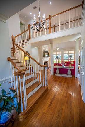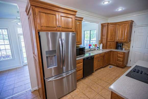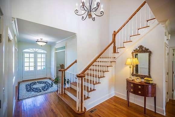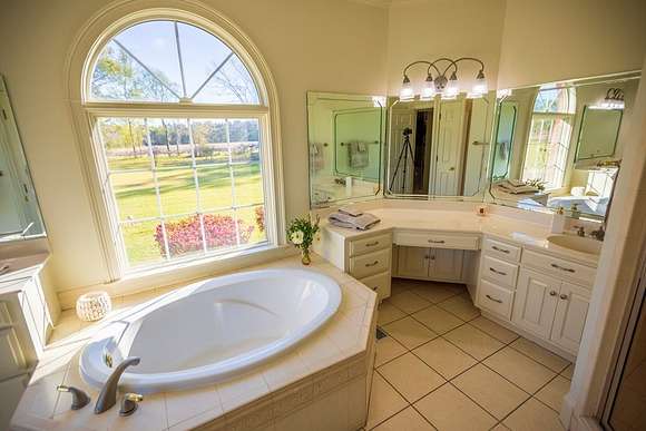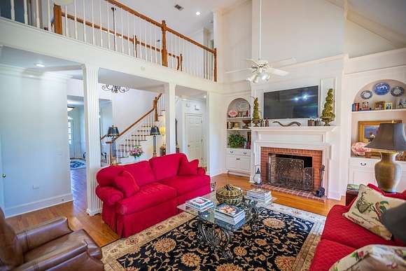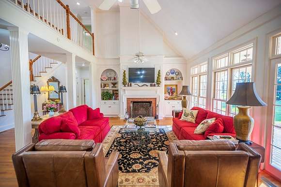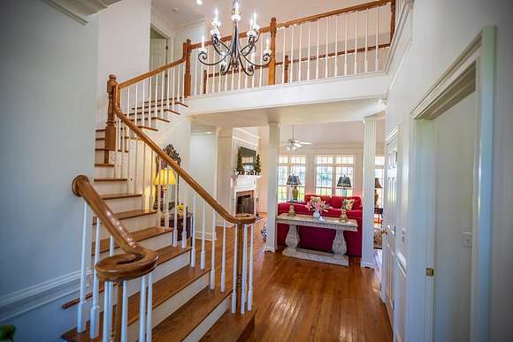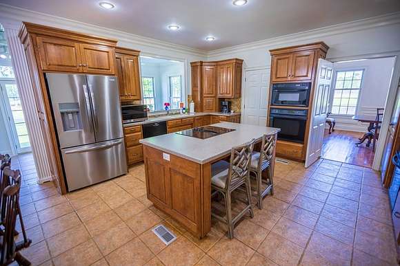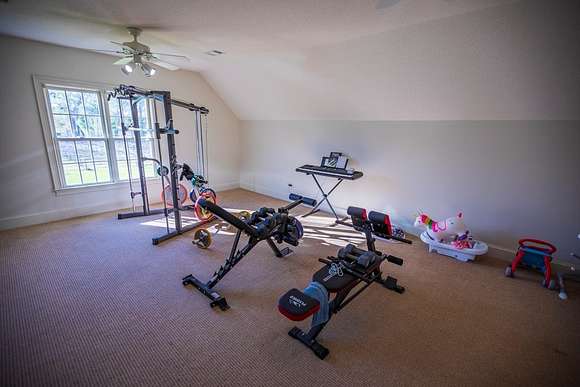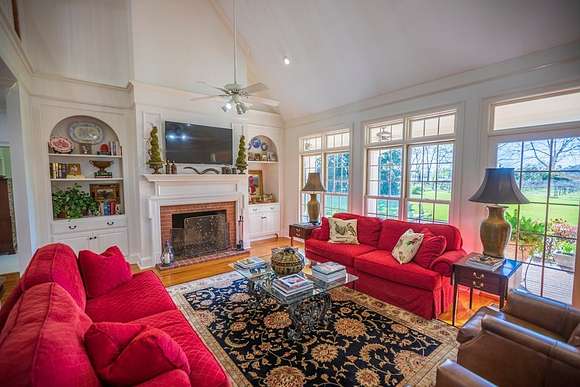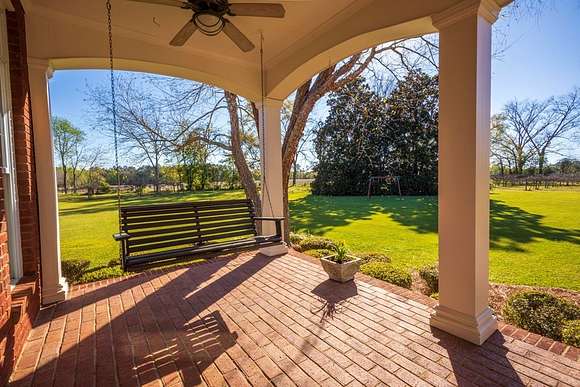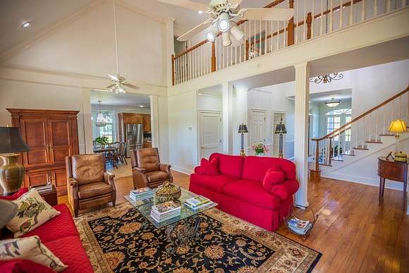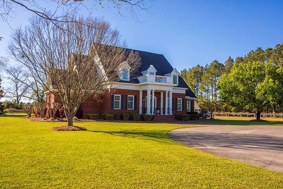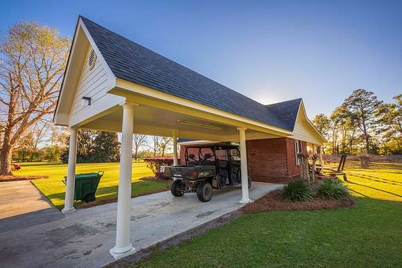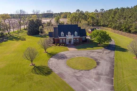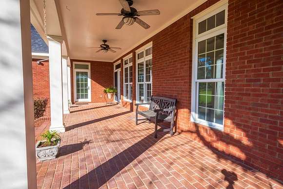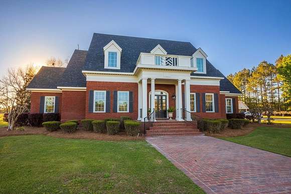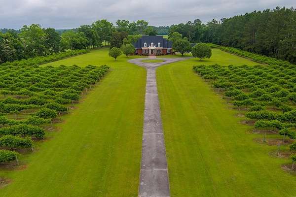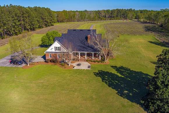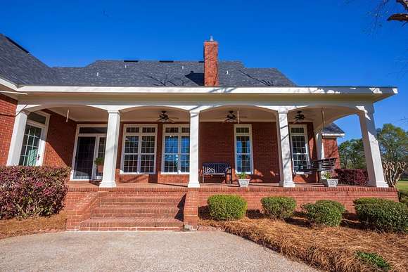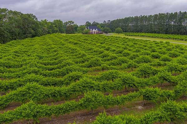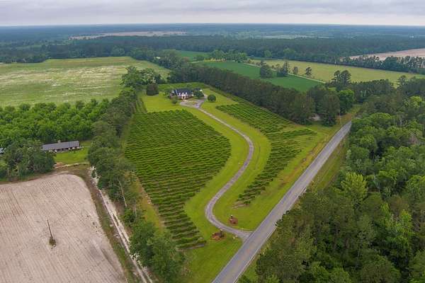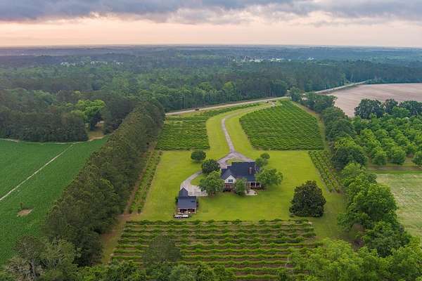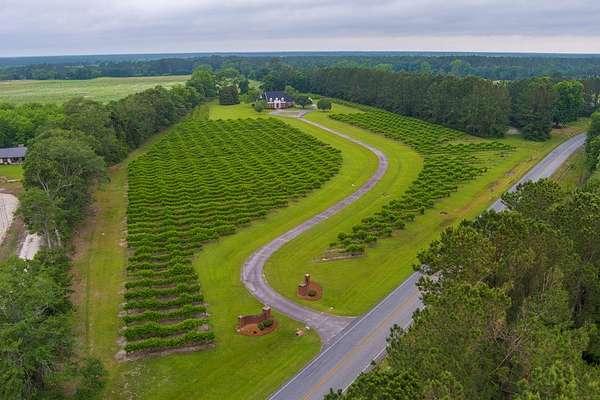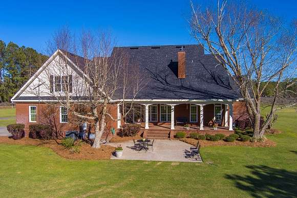 WELCOME HOME to this custom built brick Southern Living Dream Home. Beautiful setting.Nestled among 5+acres of manicured, irrigated muscadine grape vines. Total of 11.1 acres. 4 bedrooms, 4.5 baths, bonus room and workshop. Lots of custom woodwork. Foyer entry. Heart pine hardwoods in halls, great room, dining, office and stairs. Powder room off entry hall has marble top vanity and copper sink. Formal dining features judges paneling. Office is adjacent to dining. Vaulted ceiling in great room, fireplace, and bookshelves. Wonderful kitchen. Solid surface counters, smooth surface cooktop, island seats 2, built in desk, SS appliances and tile floors. 6X8 walk-in pantry with wood shelves. Stores all serving pieces, small appliances,staple items and room for an additional refrigerator or freezer. Kitchen opens to breakfast room. Step down to light filled sunroom with tile floors. Large master suite with sitting area. His/her vanities and sinks. Makeup vanity. Oversized soaking tub. Separate walk-in shower, private water closet. His and her closets with built ins. Wood stairs lead to 3 guest rooms large enough to all be master suites. Guest rooms have private baths. All guest rooms have sitting areas and walk-in closets with wood shelving, shoe racks, long and double hanging. Second floor landing overlooks great room. Large laundry with upper cabinets and laundry sink. Back staircase leads to bonus room perfect for teens, playroom or private den. Enjoy Beautiful Sunsets from covered brick back porch swing that overlooks patio and grape vines. Wired 288 square foot workshop. Also brick with 12 X 25 carport and 20 X 25 lean to for storing tractors, mowers, toys. Tons of storage, closets galore, room for everything here. This home has so much to offer. Peaceful and Serene! Here is the video link: https://youtu.be/NdO2ygYL_u8?si=t7XWqWwlq2tqhXsy