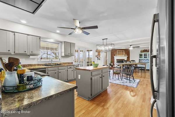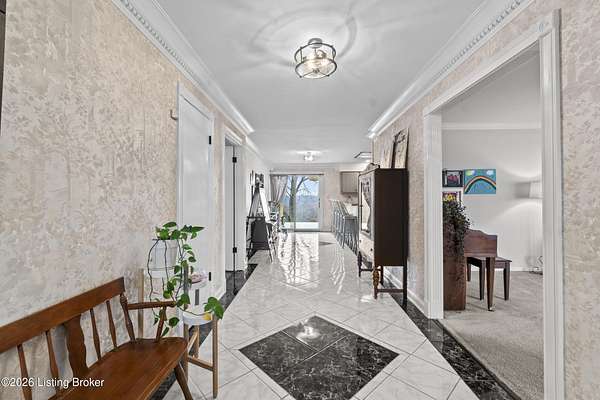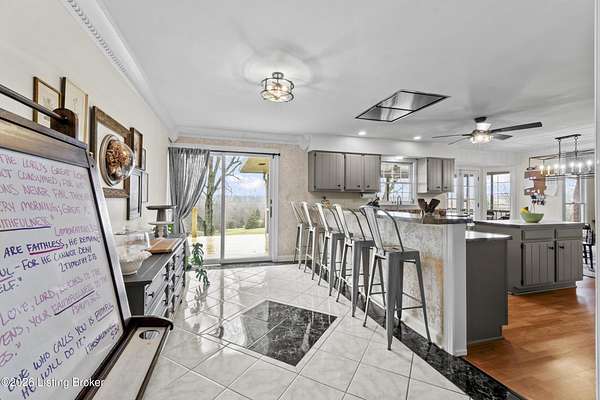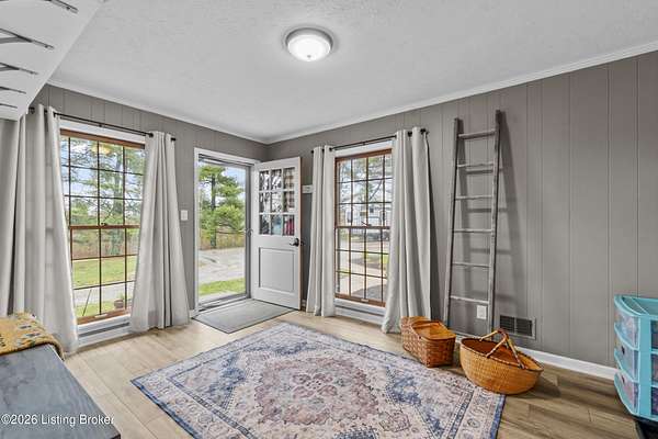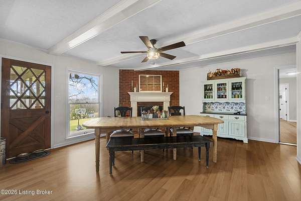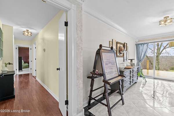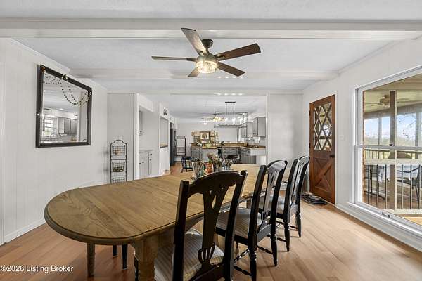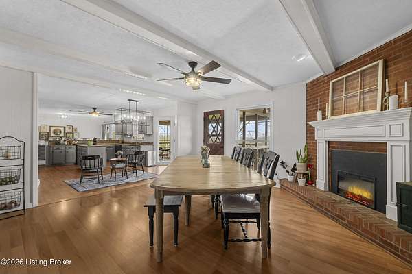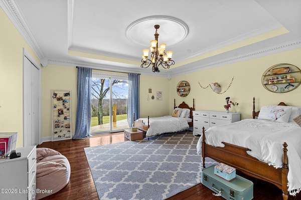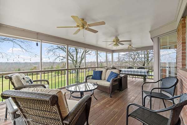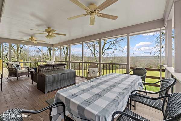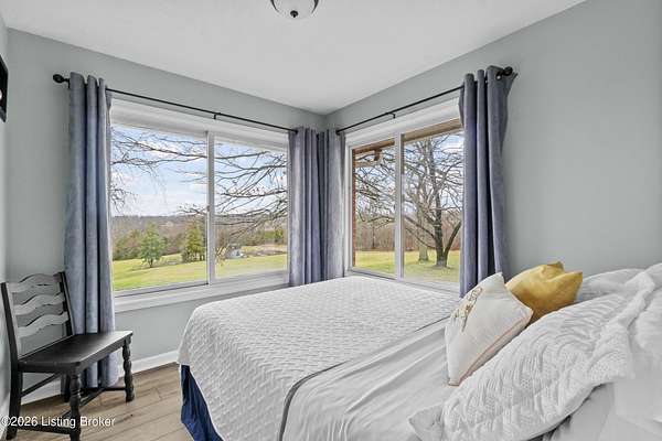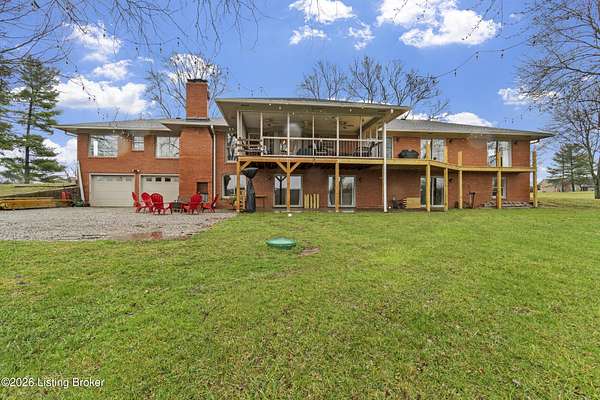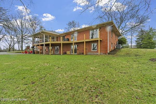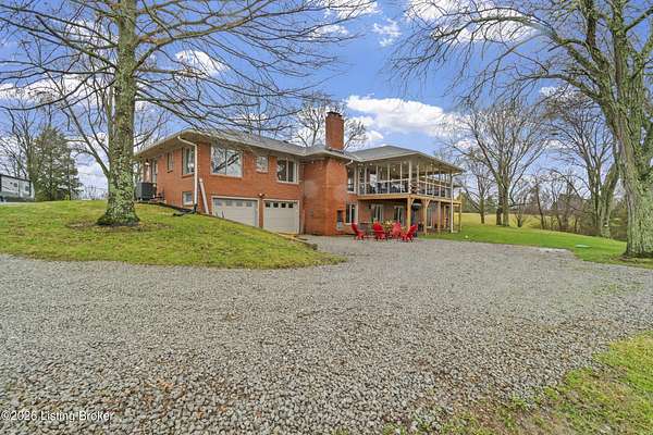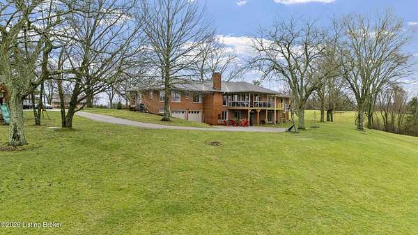 Welcome to 2421 Pendleton Rd, set on nearly 10 picturesque acres. This exceptional walk-out ranch delivers the perfect blend of space, flexibility, and privacy with over 5,500 finished square feet, 7 bedrooms, and 4 full baths. Designed for multi-generational living or income potential, a private-entry suite offers two bedrooms, a living room, full bath, and laundry-ideal for guests or Airbnb use. The main level impresses with a grand foyer featuring detailed crown moulding, a striking 25-foot living room with bay window, and a spacious kitchen with breakfast bar that flows seamlessly into the dining room with a warm wood-burning fireplace that rcurrently has an electric insert. A refined library/office with custom built-ins adds both charm and functionality. Enjoy peaceful views from covered deck that opens to a new deck under construction that will be finished prior to closing, perfect for entertaining or unwinding. The primary suite features double closets and private access to a catwalk leading to the deck, complemented by two additional generously sized bedrooms. The finished walk-out lower level expands your living space with a large family room with wood-burning fireplace, two bedrooms, a full bath, ample storage, and access to a 2.5-car attached garage, plus a patio for outdoor enjoyment. A rare opportunity to own a versatile retreat with room to live, host, and grow. Large garden with 27 raised beds, each with water run to them. Chicken coop/garden shed with water and electric. The property has multiple trails with bridges throughout.