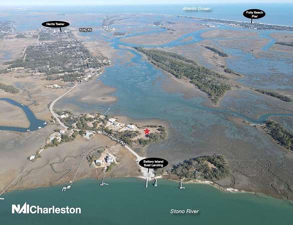 2421 Sol Legare Road in Charleston, SC -- a rare +/-4.267 gross acre waterfront opportunity in one of the Lowcountry's most desirable coastal corridors. This exceptional tract features sweeping water views, breathtaking sunrises and sunsets, and is just steps from the Battery Island public boat landing, providing effortless access to the surrounding creeks and waterways. The property captures the charm and tranquility of a classic Sea Island setting, while remaining remarkably convenient to urban and beach amenities. Downtown Charleston is just 15 minutes away, and Folly Beach can be reached in under 10 minutes.Zoned OD-SL, the site allows for the development of four expansive private estate lots, presenting a unique opportunity for a boutique residential enclave or legacy family compound.