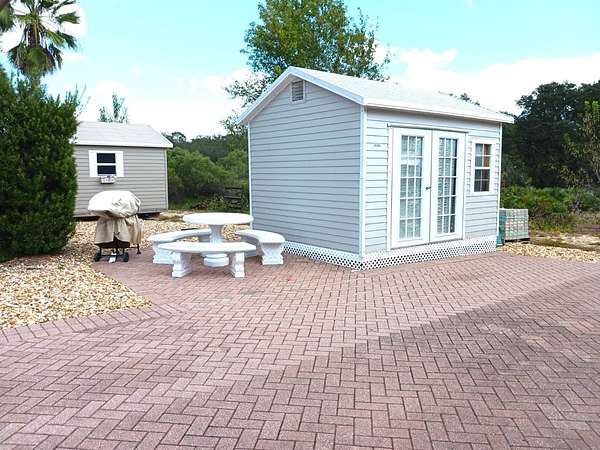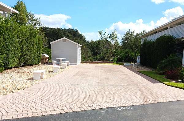 This nicely landscaped vacant property is located in the 55+ Regal Pointe Community at Deer Creek. Regal Pointe is exclusively for Class A RVs, as well as site-built homes. The lot, complete with beautiful brick pavers and irrigation system, measures 45' wide x 92+' deep. It backs up to a wooded area at the backside of the property, providing great privacy while spending time outside. A like-new 10' x 12' utility shed with gorgeous french doors has already been set up on the property, making this the perfect location for you to back your RV in, connect to the full 50 amp service and enjoy the Florida RV Lifestyle! The Regal Pointe Community has a beautiful clubhouse, heated pool, workout room, and many planned seasonal activities. Deer Creek is a golf cart friendly community providing easy, quick access to restaurants, shopping & banks. Amenities include golf, tennis, pickleball, shuffleboard, driving range, tiki bar, and many planned seasonal opportunities are available. **As a sidenote... the adjacent property (2427 St George Dr) is also for sale, making this the perfect scenario for someone searching for one lot for parking their RV and the other for building a home or casita. Call or text today to view this great opportunity!