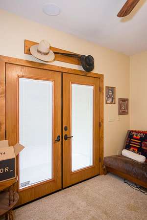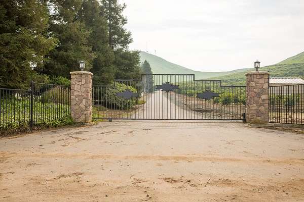 - Back Yard, Fencing, Front Yard, Gentle Sloping, Irregular Lot, Landscaped, Pasture, Ranch, Rectangular Lot, Secluded, Sprinklers in Front, Sprinklers in Rear